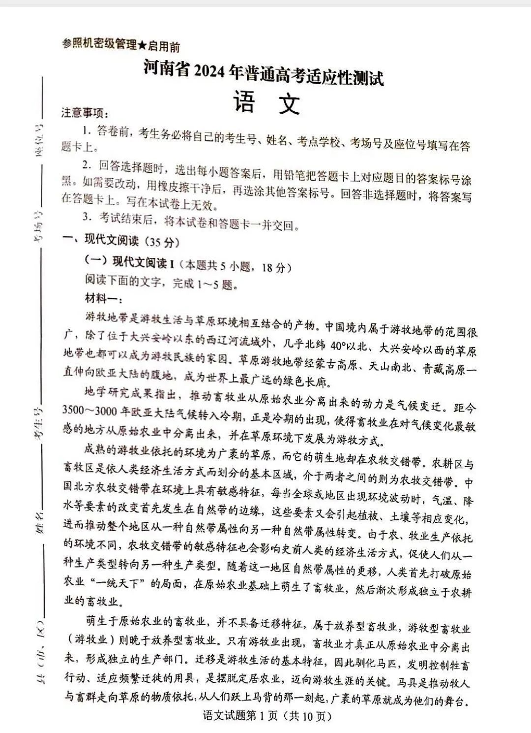2024届高三七省联考语文试题
