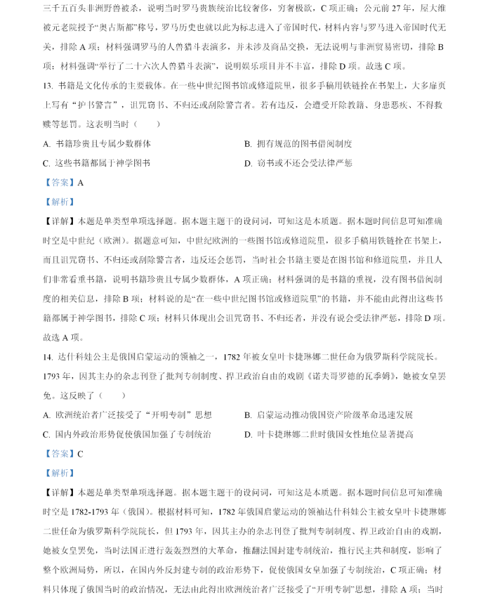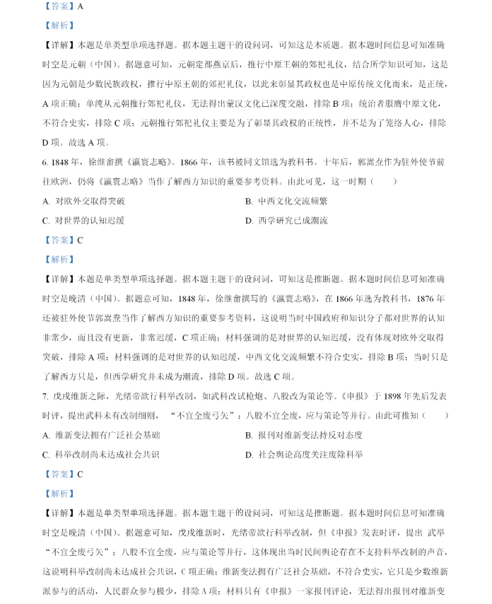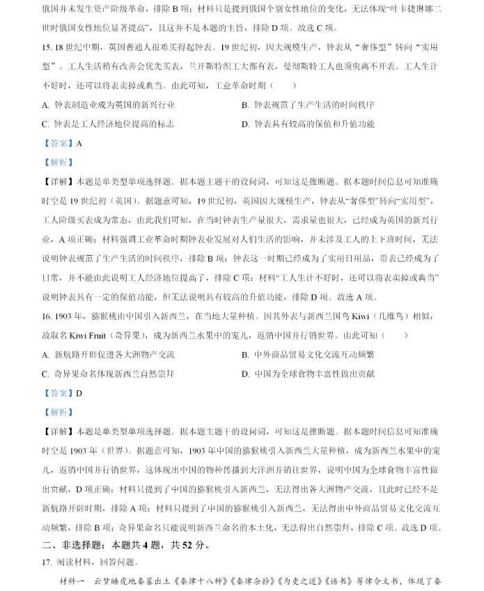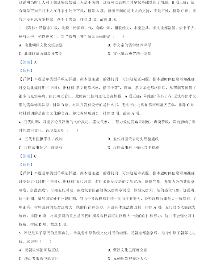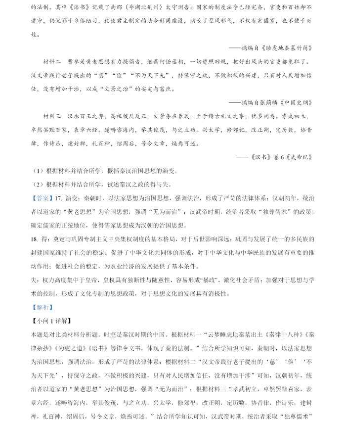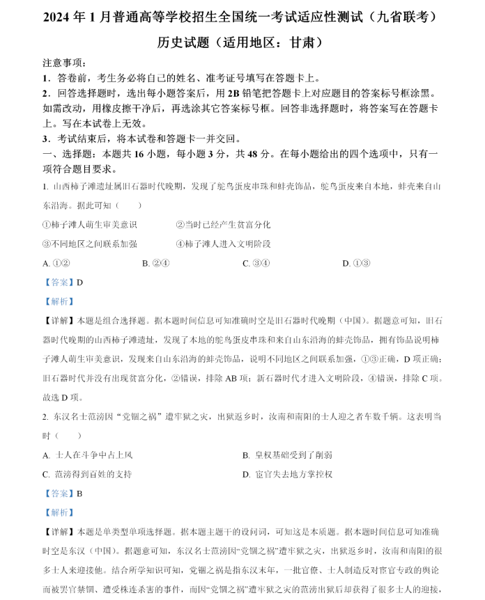 2024年甘肃省普通高考适应性测试历史试题及答案