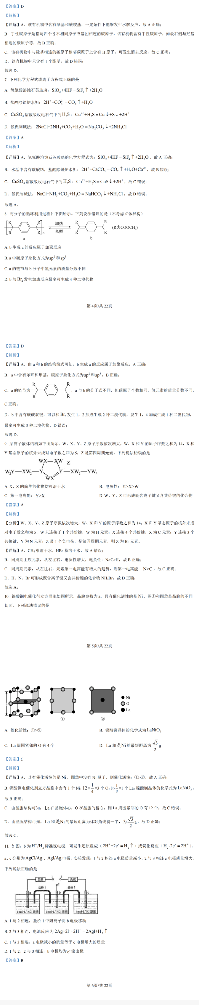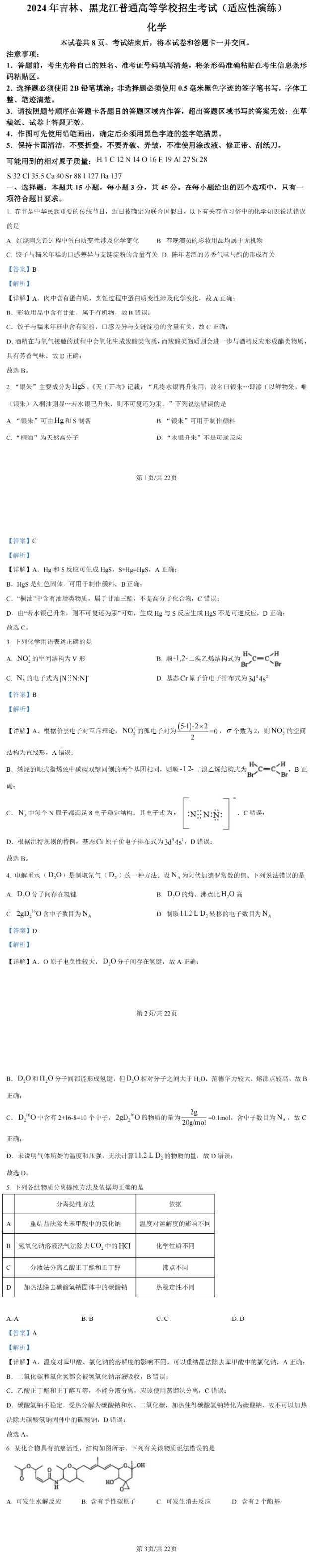 2024年吉林/黑龙江省普通高考适应性测试化学试题及答案