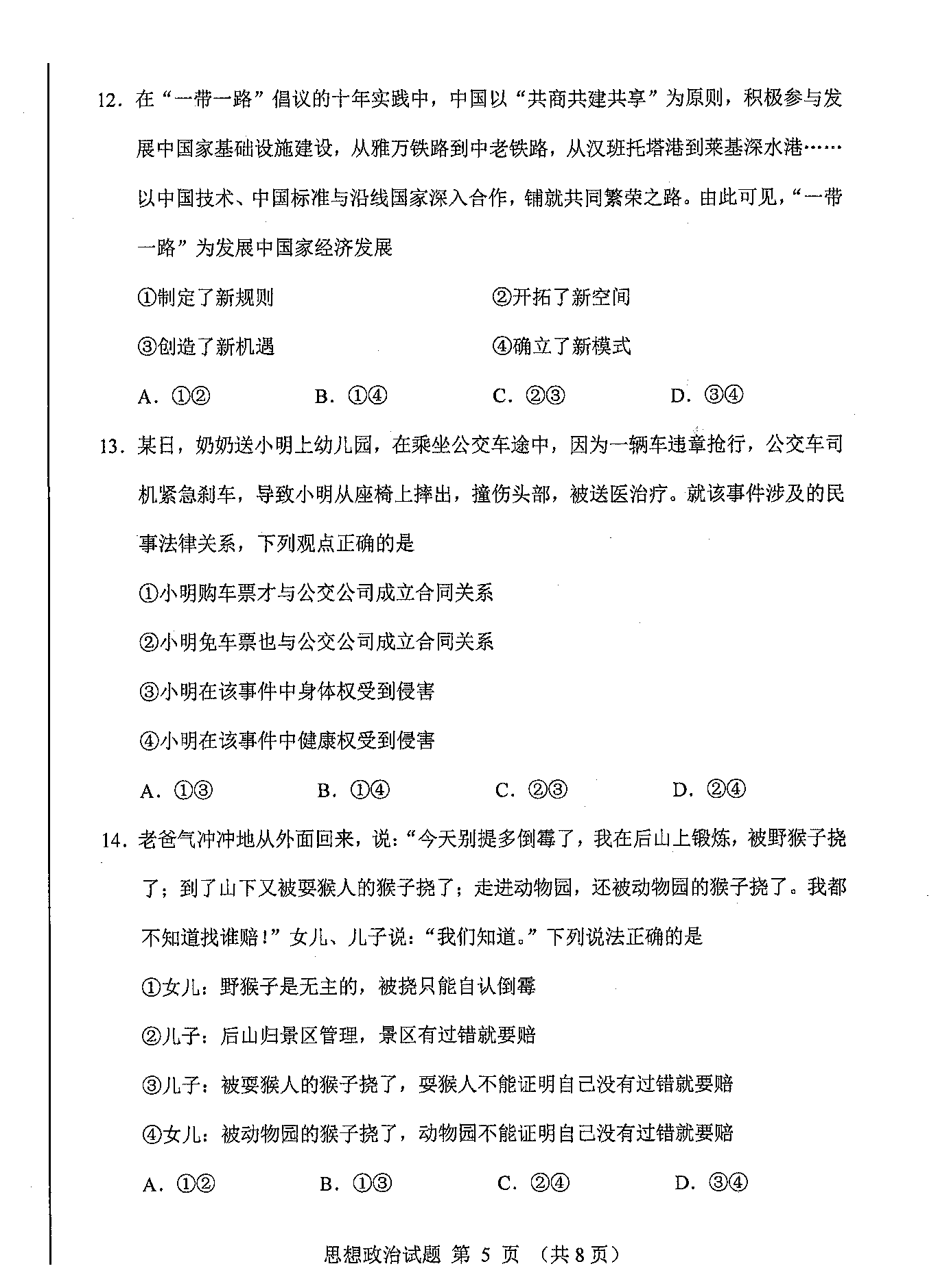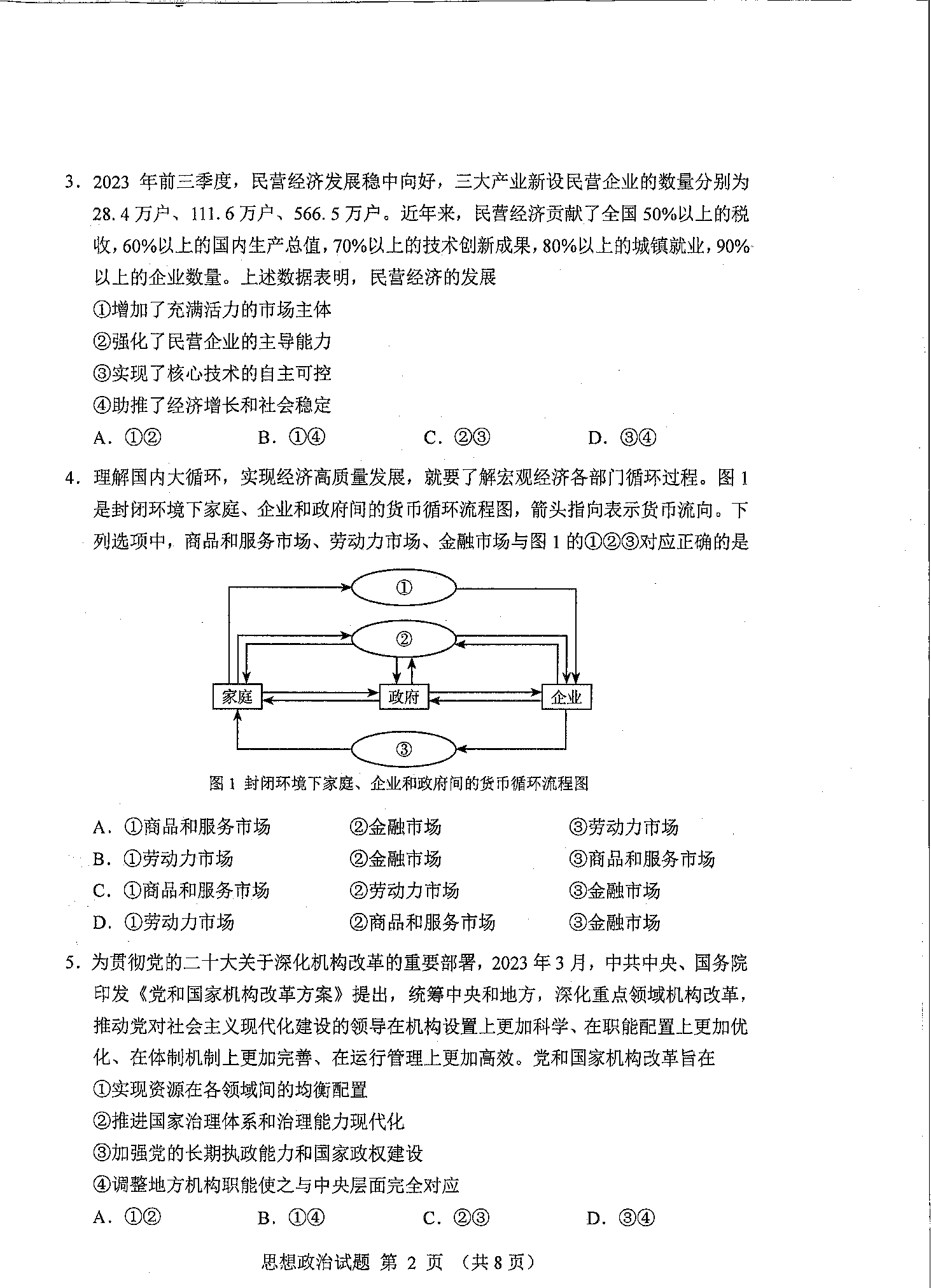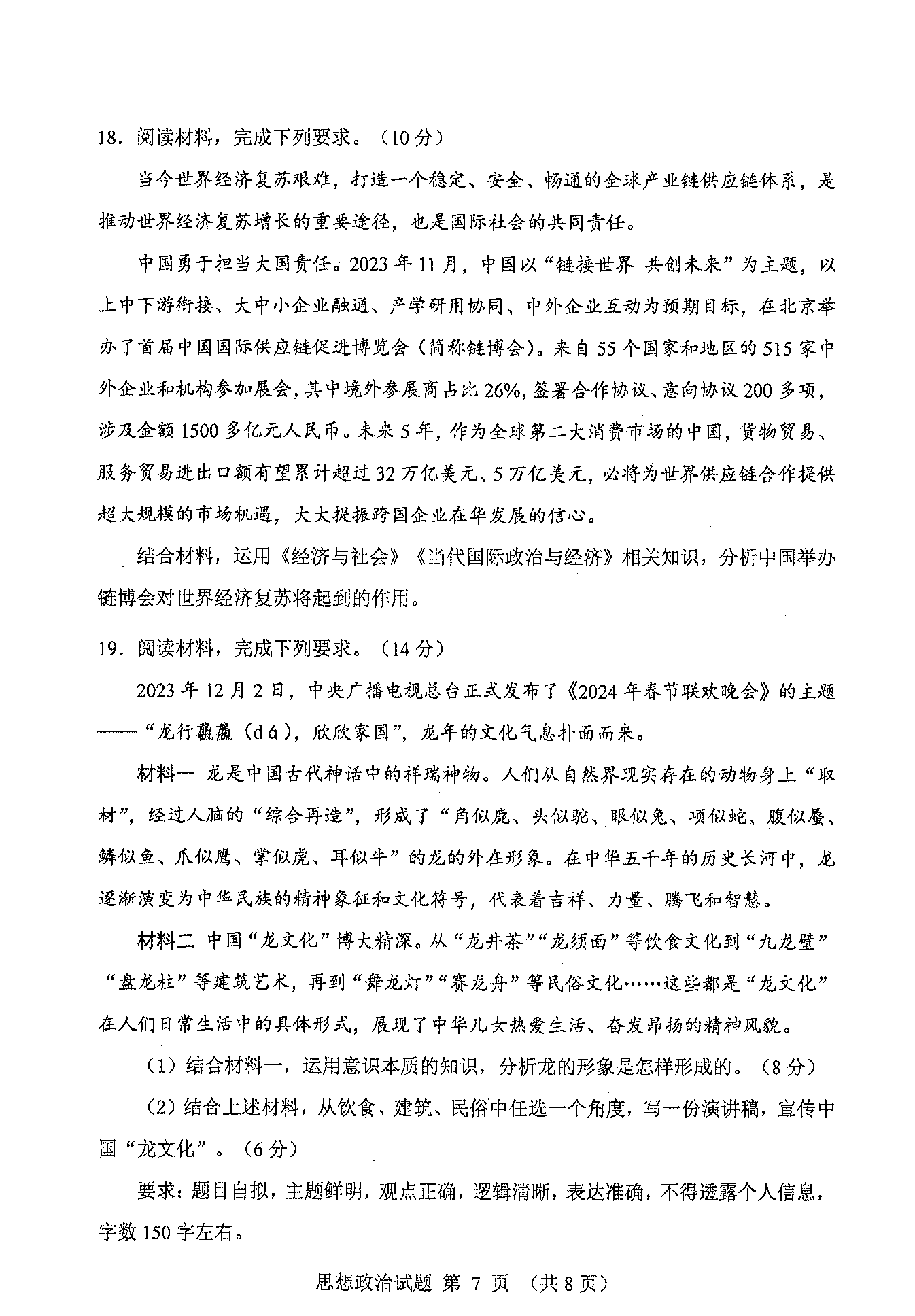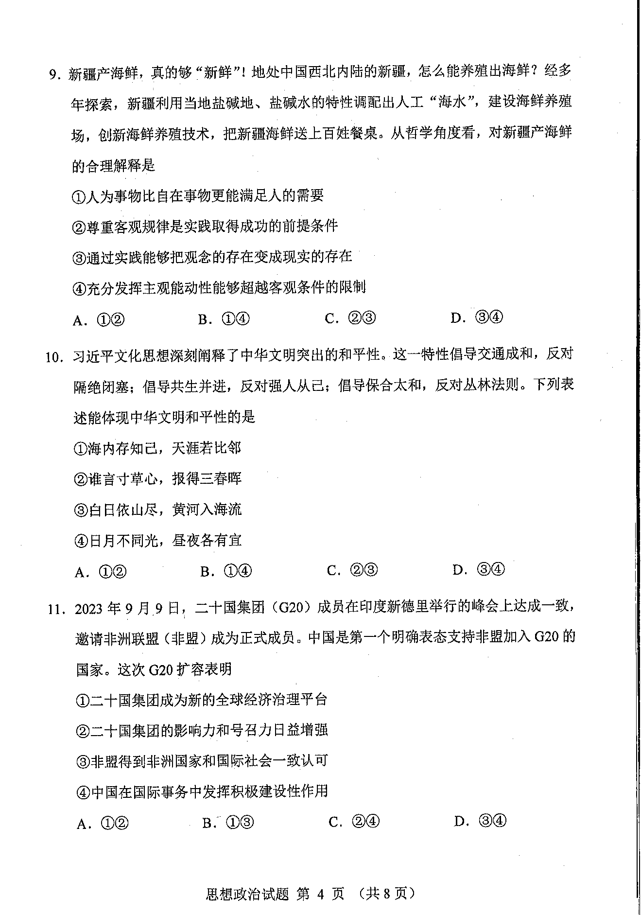 2024年吉林/黑龙江省普通高考适应性测试政治试题