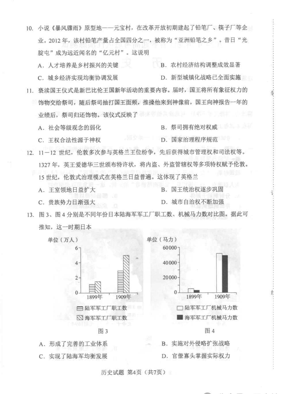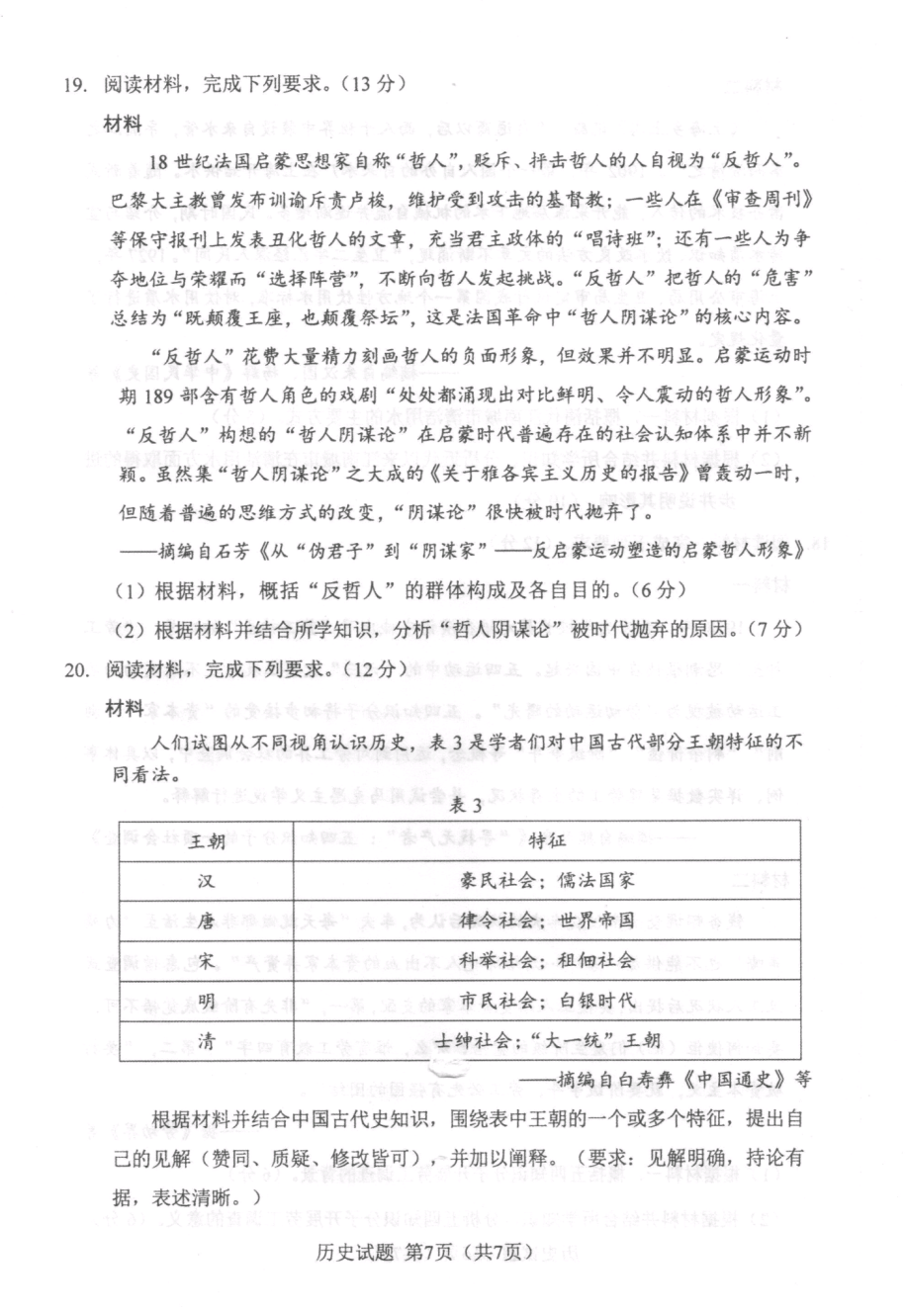 2024年吉林/黑龙江省普通高考适应性测试历史试题