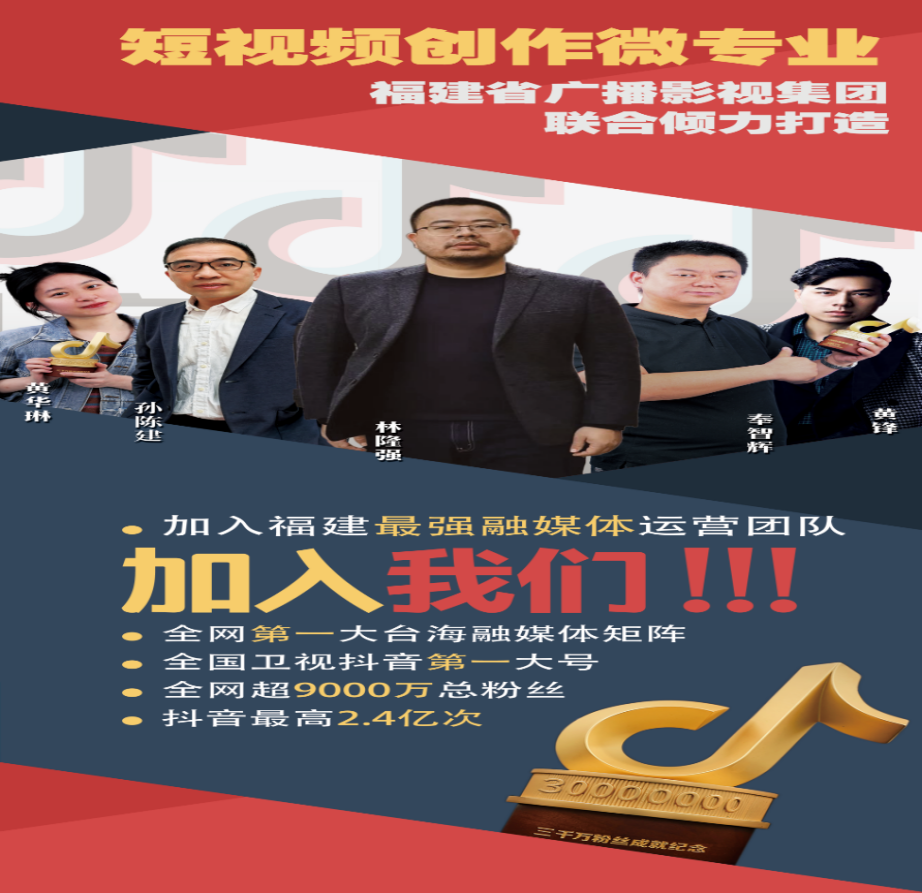 该专业由福建省广播影视集团联合倾力打造,坐拥全网最大的融媒矩阵,粉丝超九千万!类型实操、项目实训,手把手教你玩转十五分钟内各类“短”视频!产教融合育人:学技能、出优品、得学分、领津贴、获奖金!