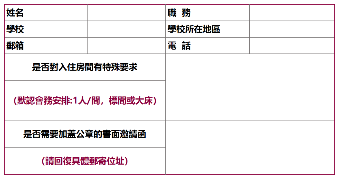 5)請儘快填妥回執,與10月24日前將掃描件用郵件發送至下麵會務聯絡人。
