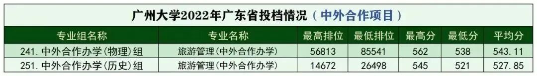 ▲广东中外合作专业投档情况