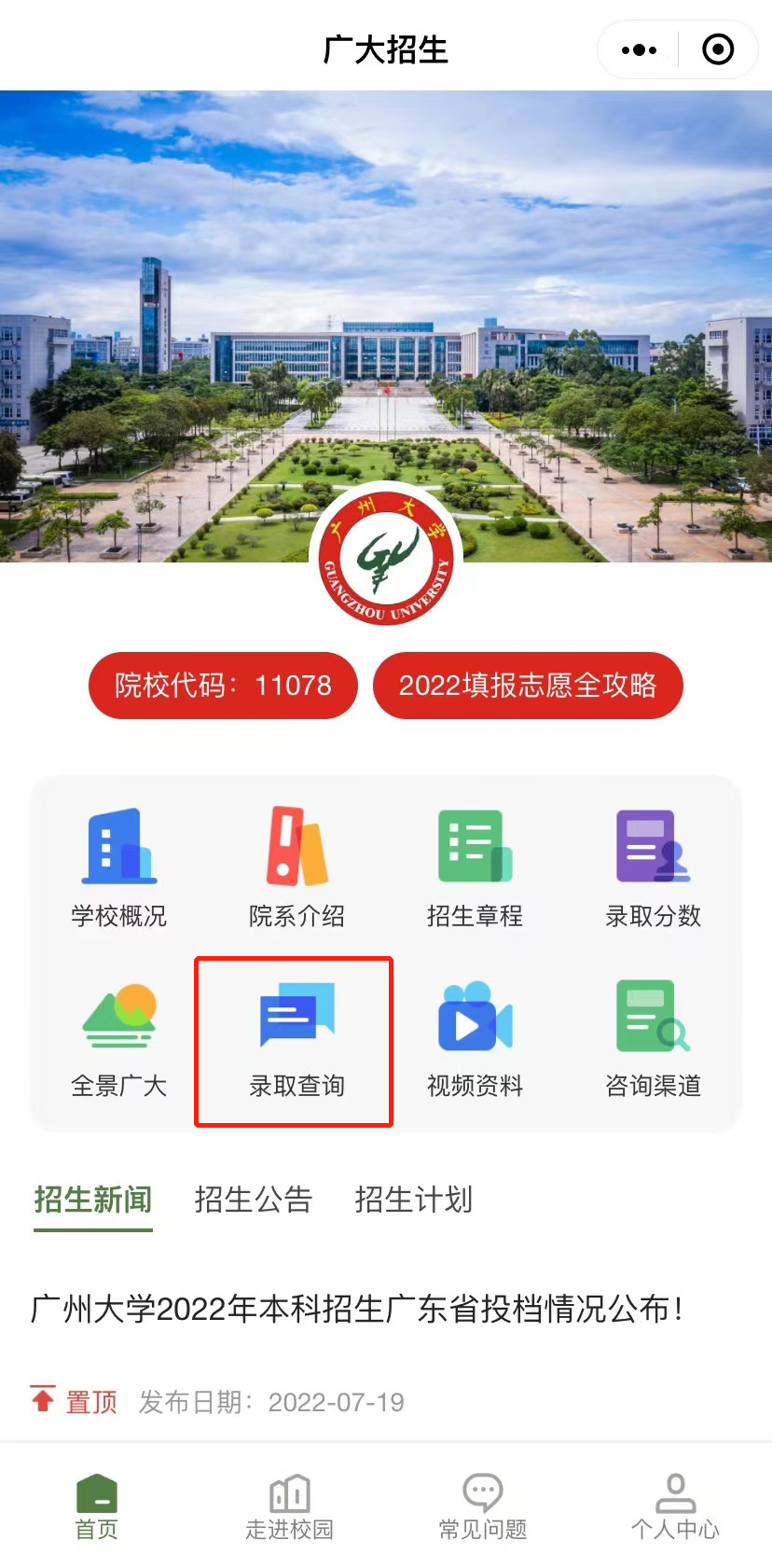 (2)在首页点击录取查询