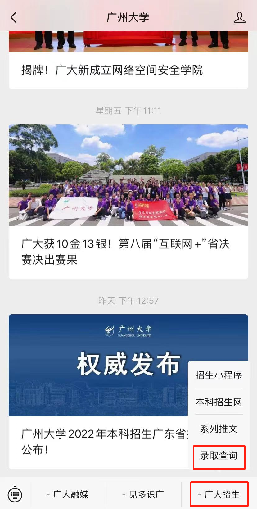 “广大招生”微信公众号