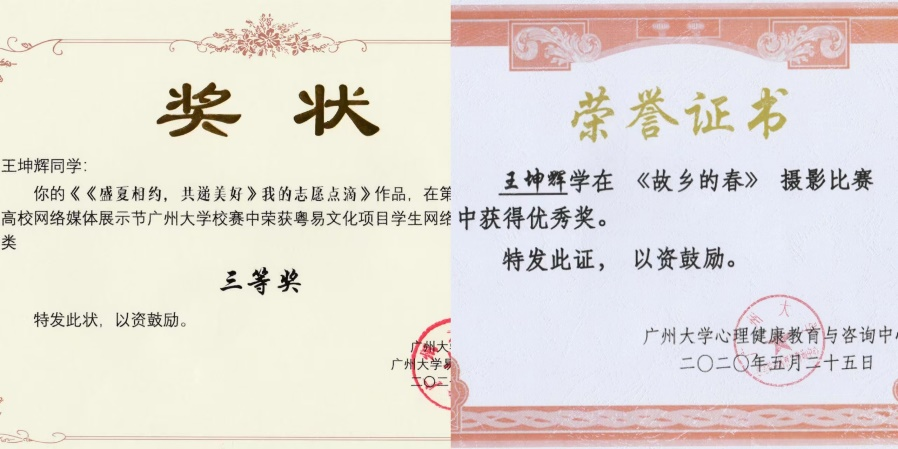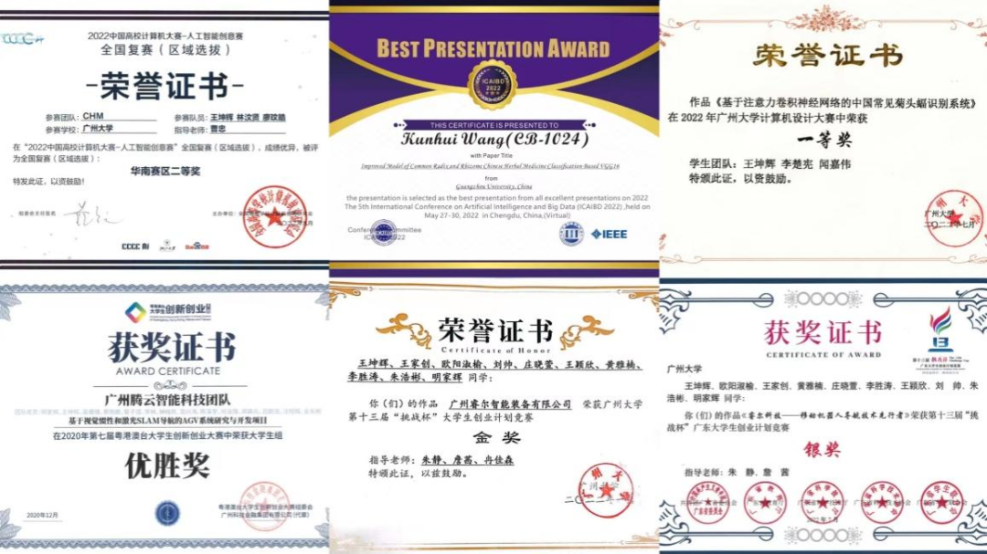 在大学期间,王坤辉积极参与各式各样的竞赛活动。他觉得在大学里,仅把书读好是远远不够的,书是浩瀚的海洋,书的外面仍然是一片汪洋。参加比赛是对自己专业知识的实践和能力的培养。参加创新创业类的比赛能够培养创新意识,了解国家以及市场需求,避免闭门造车。而这些比赛往往是多学科交叉的,团队合作能力也尤为重要,未来的工作仅仅依靠自己的力量,所做的东西是有限的。