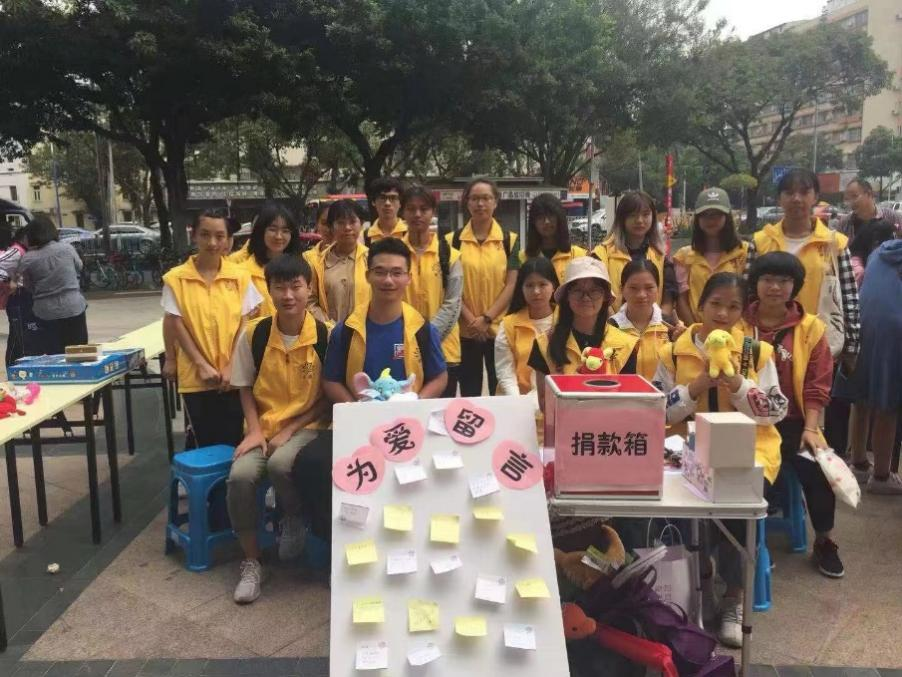 王坤辉(前排左一)参加童心向党跳蚤市场志愿活动