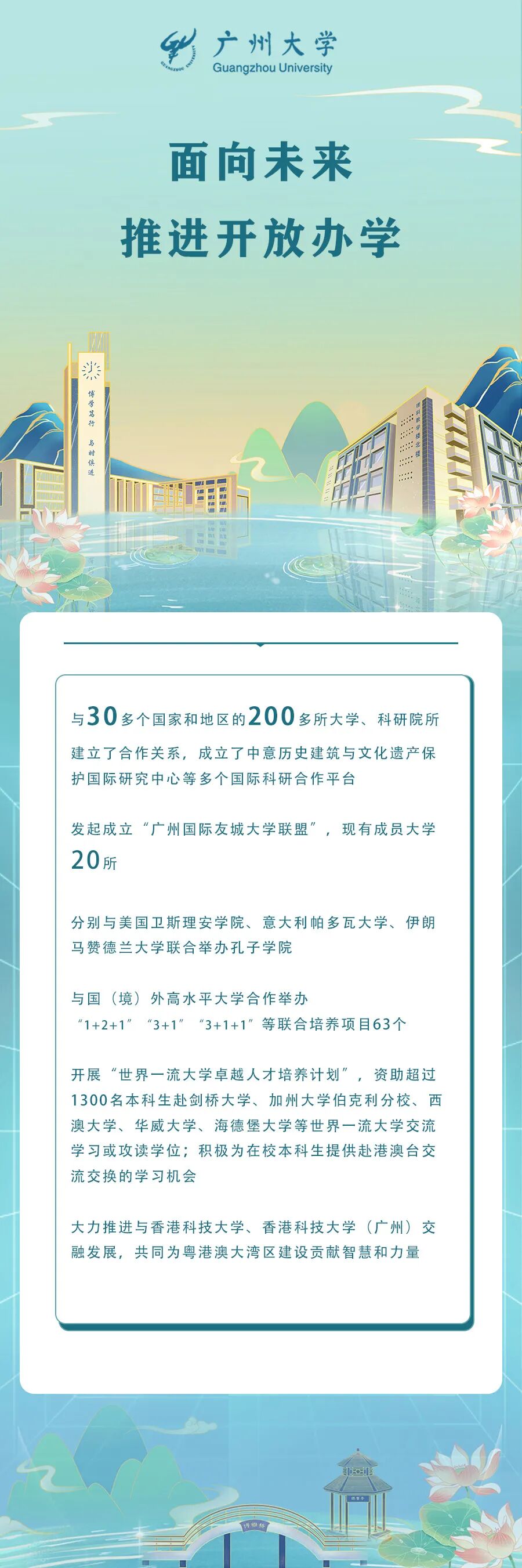 学校紧紧抓住国家“双一流”建设、广东省和广州市高水平大学建设机遇,坚持“四个面向”,深化与广州和粤港澳大湾区“三个对接”,聚焦新工科、新文科、新师范建设,积极探索新农科发展。2023年