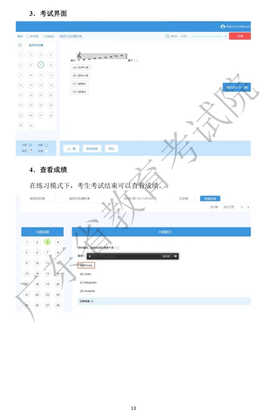 2.广东省普通高等学校招生统一考试音乐术科练耳与乐理在线考试系统(模拟)-考生端操作手册