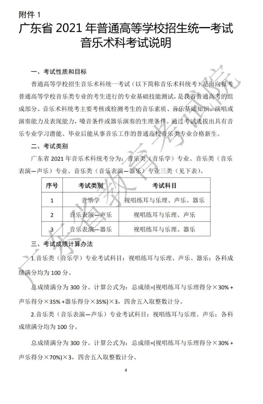 1.广东省2021年普通高等学校招生统一考试音乐术科考试说明