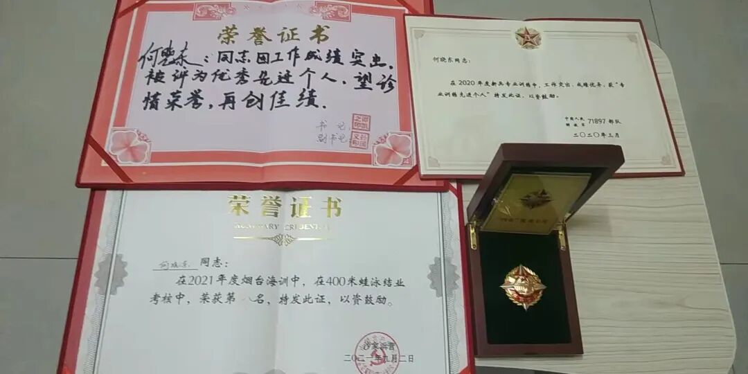 凭借这股不服输的劲头,何晓东坚持刻苦训练。作为陆军装甲兵中的通讯兵,他的日常任务是负责电台并与上级联络沟通。在山东烟台参与的海训任务给何晓东留下了深刻印象,“亲身经历了后背晒掉皮的情况。”他笑着回忆。从初出茅庐的新兵成长为“有灵魂、有本事、有血性、有品德”的“四有”士兵,他还多次获得“先进个人”荣誉称号。