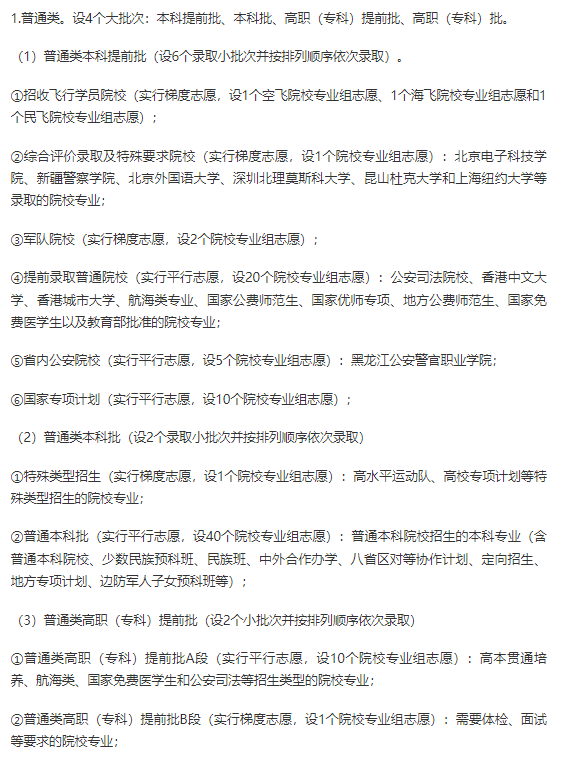 2024年,黑龙江对招生批次进行合并。原普通本科一批(A段、B段)和普通本科二批(A段、B段)合并为普通本科批,艺术类本科提前批A段和艺术类本科提前批B段合并为艺术类本科提前批。志愿设置采用“院校专业组”模式。院校专业组是招生院校根据不同专业(类)的人才培养需要和选考科目要求等进行设置,是志愿填报和投档的基本单位。
