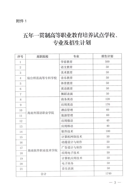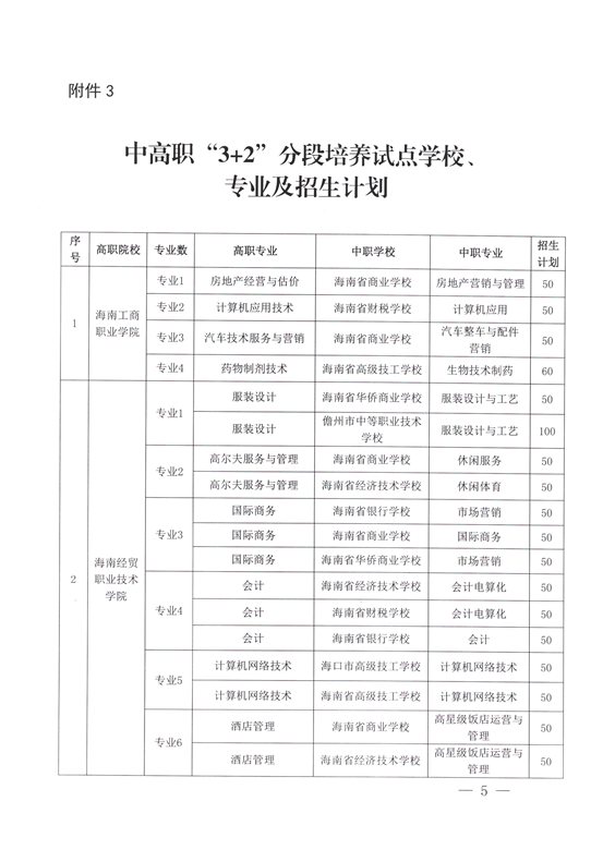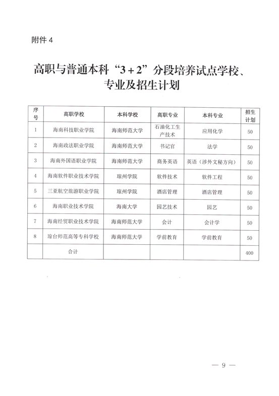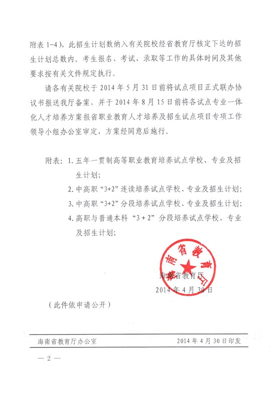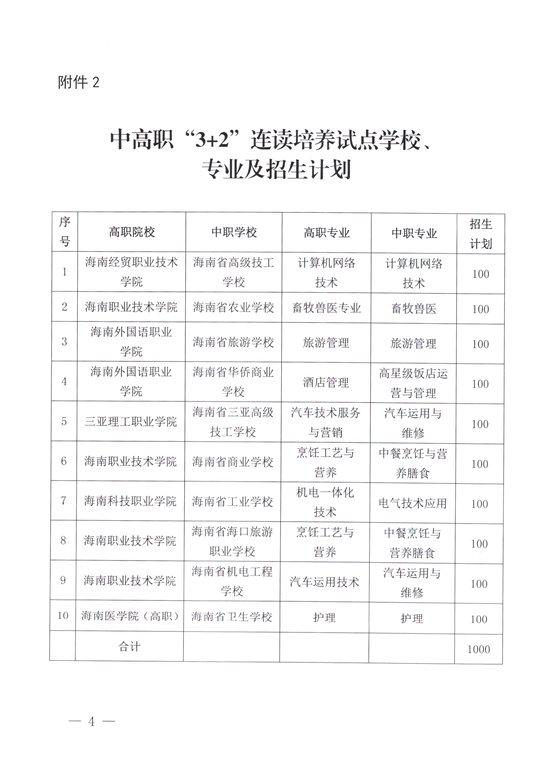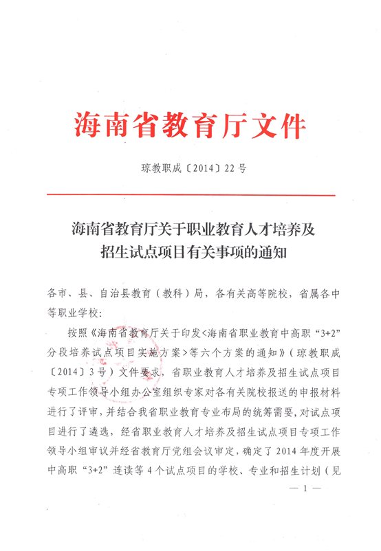 海南省教育厅关于职业教育人才培养及招生试点项目有关事项的通知