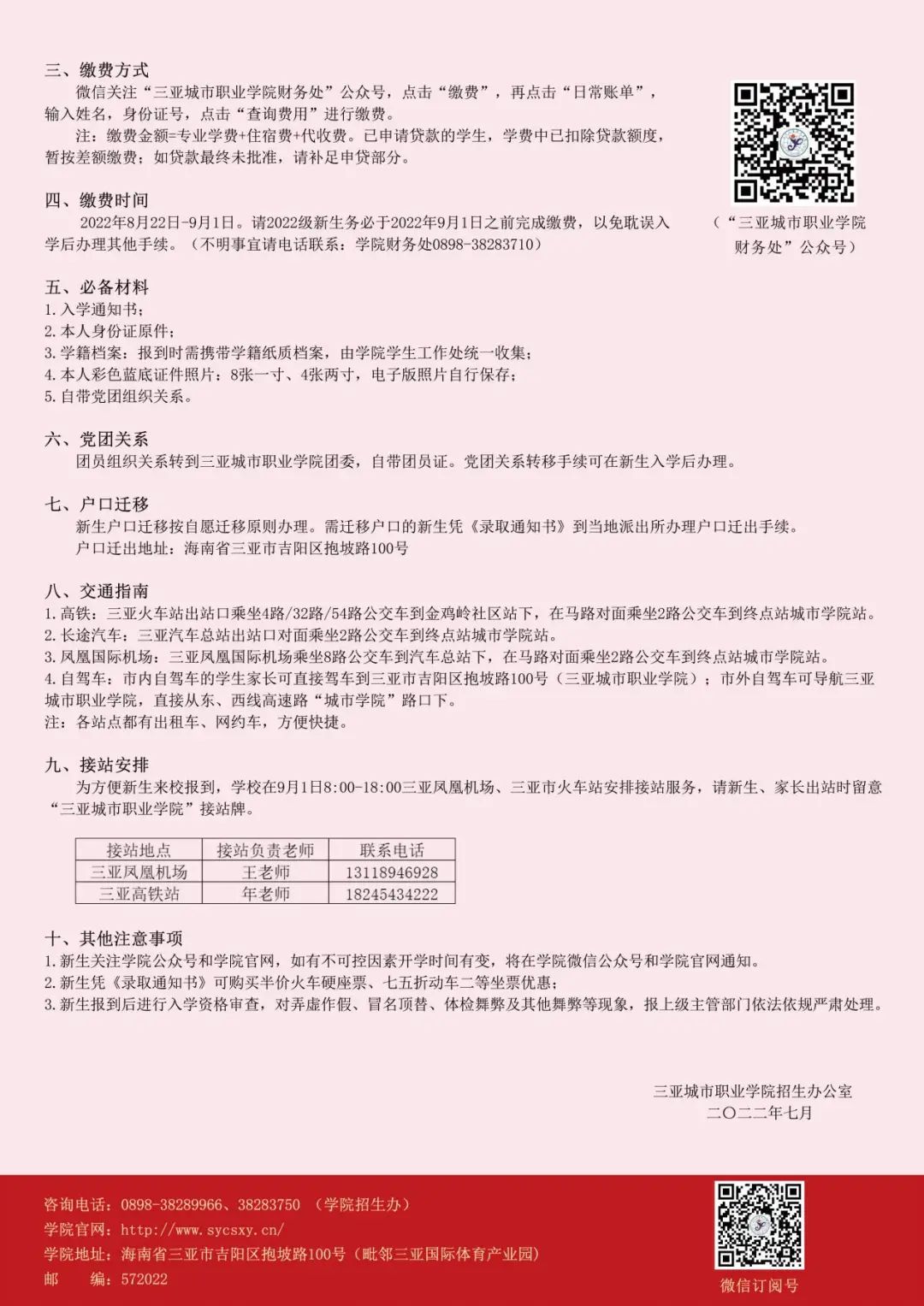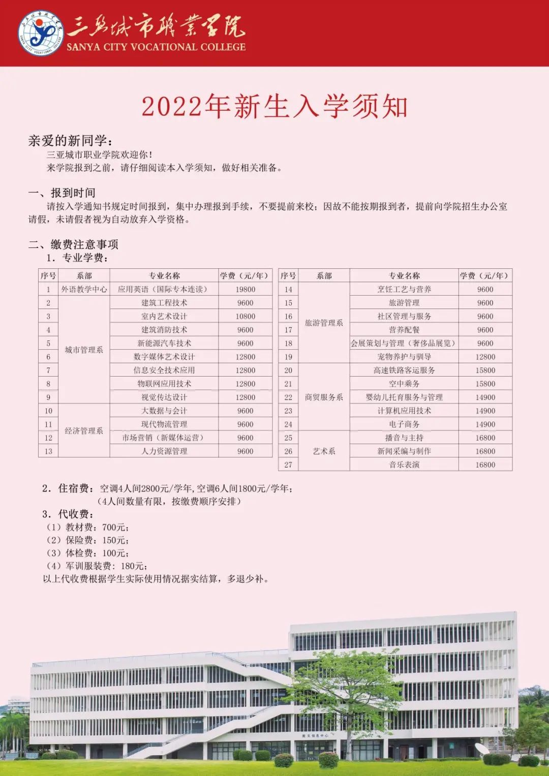 《2022年三亚城市职业学院秋季学期入学报到安全防疫指南》