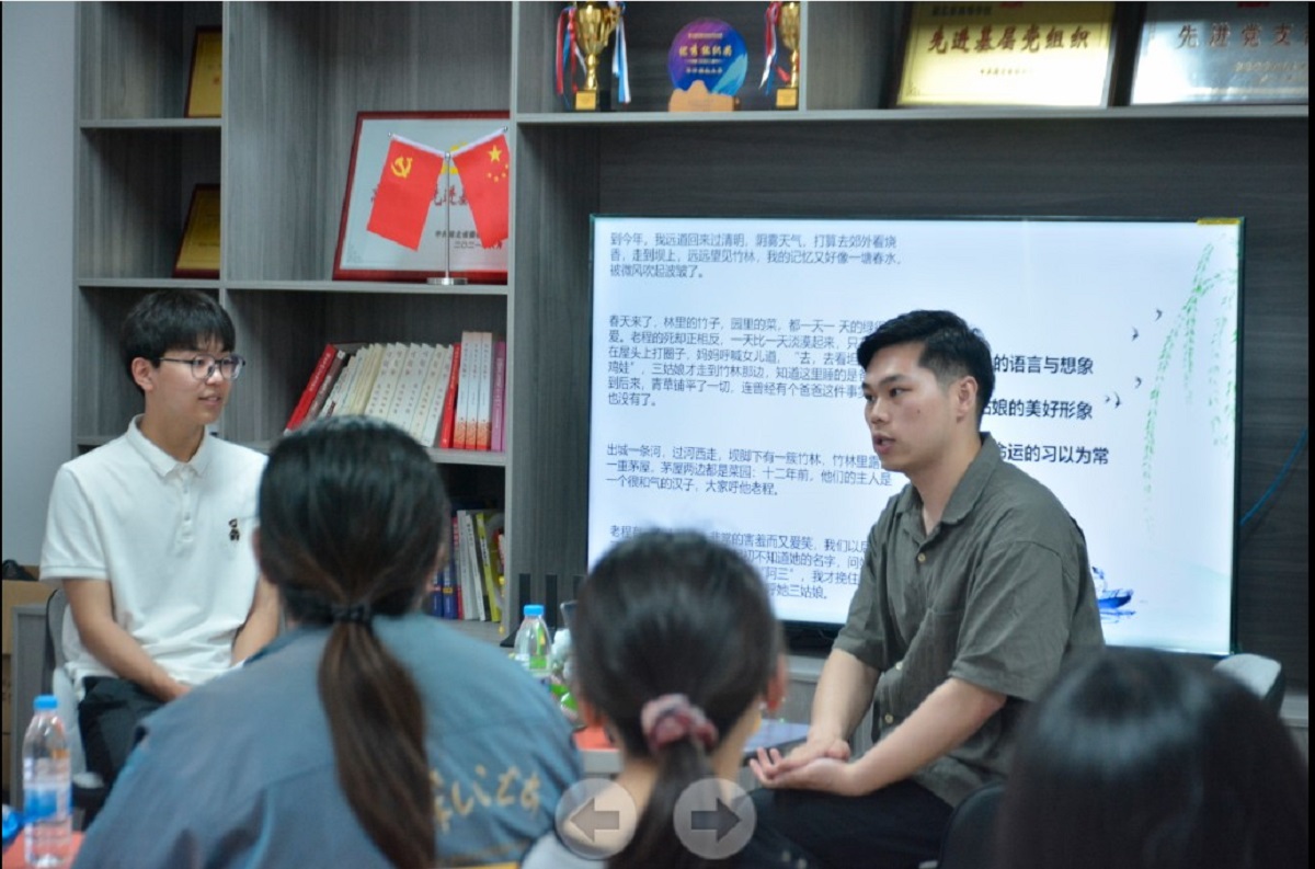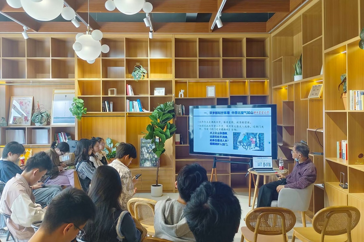 经济管理学院举办了“诗意追寻:汪曾祺的自然书写”阅读分享会,经济管理学院辅导员彭松老师由京派作家引入,从废名开始,再由作品、语言、经历三方面介绍沈从文,最后又由伤痕文学和寻根文学的角度介绍汪曾祺。在交流讨论阶段,师生又共同探讨了关于阅读的看法以及同时期王小波的作品。活动结束后,许多同学不舍得离开,主动与彭松进一步探讨。