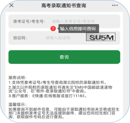 2. 选择“E快递”—“录取通知书”—输入“考生号/准考证号”和验证码即可查询。