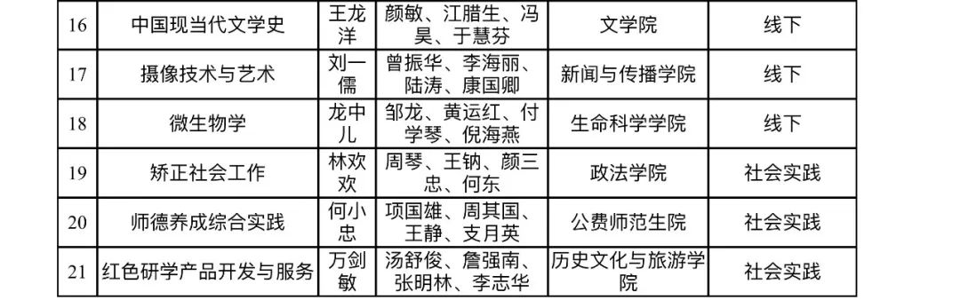 4月11日,教育部公示第二批国家级一流本科课程认定结果,我校21门课程荣列榜中。其中,线上一流课程3门,虚拟仿真实验教学一流课程2门,线下一流课程6门,线上线下混合式一流课程7门,社会实践一流课程3门,再次实现五类“金课”全覆盖。入选总数位居全国高校排名并列第46,全国师范大学排名并列第6,地方师范院校排名并列第3,创历史佳绩。目前,学校共获批国家级一流本科课程32门,省级一流课程201门。