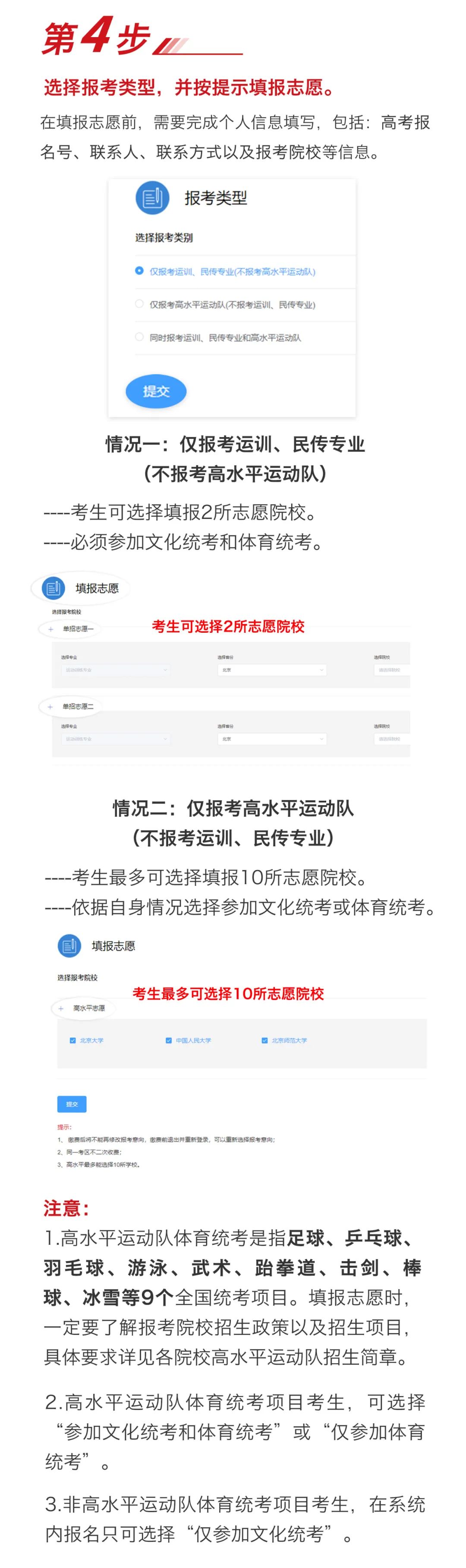 3月1日12:00,2022年体育单招夏季项目报名工作正式开启,考生届时可以登录“体育单招系统”错峰进行报名。按照《2022年普通高等学校运动训练、武术与民族传统体育专业招生管理办法》要求,考生须依据招生院校招生简章,统一在“中国运动文化教育网”(www.ydyeducation.com)或“体教联盟APP”中进行报名。为确保本次单招报名工作顺利完成,平台将考生报名流程整理如下。