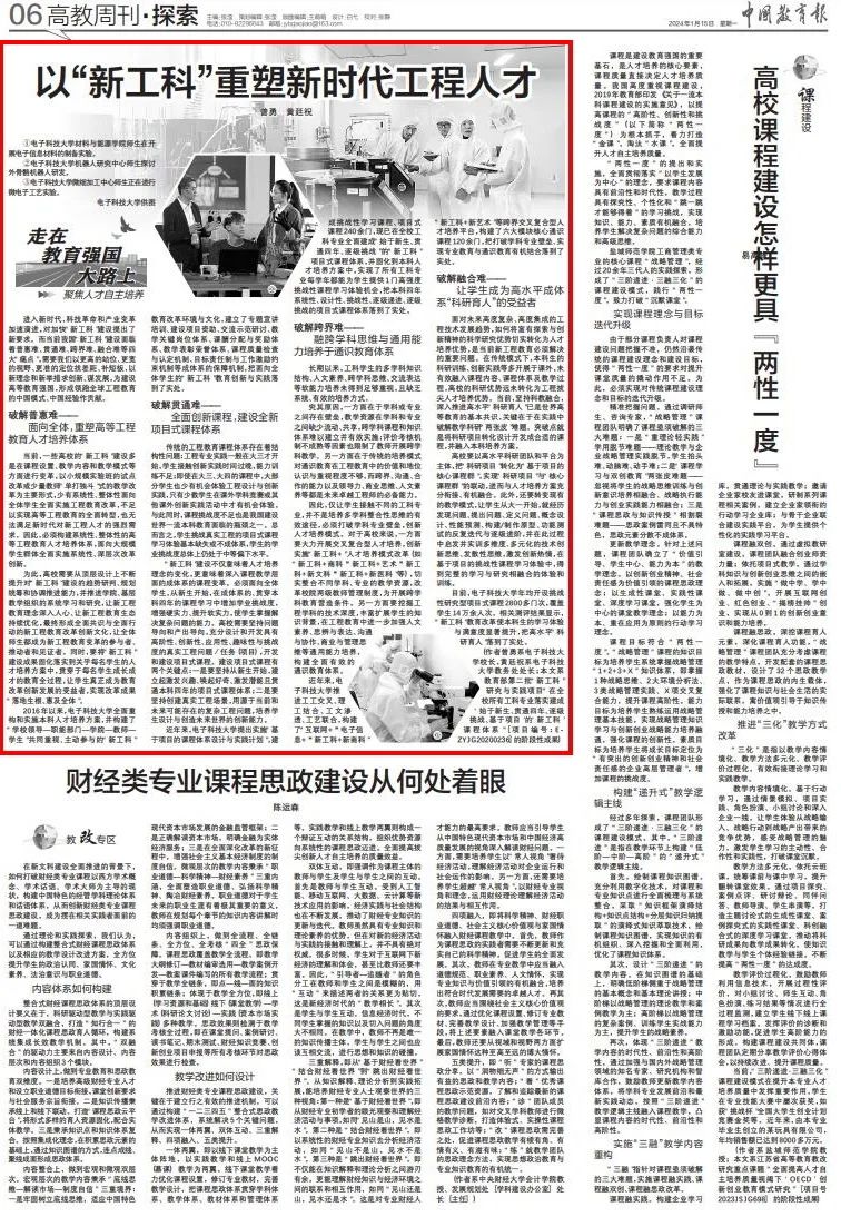 1月15日,《中国教育报》头版头条刊发了《培养有“锋利实力”的卓越工程人才》通讯报道,聚焦于当前