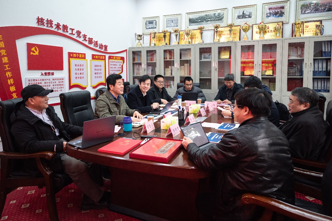 报告会前,曹臻一行4人莅临我校指导工作并座谈。座谈会在核工楼215会议室举行。核自院班子全体成员参加座谈会。