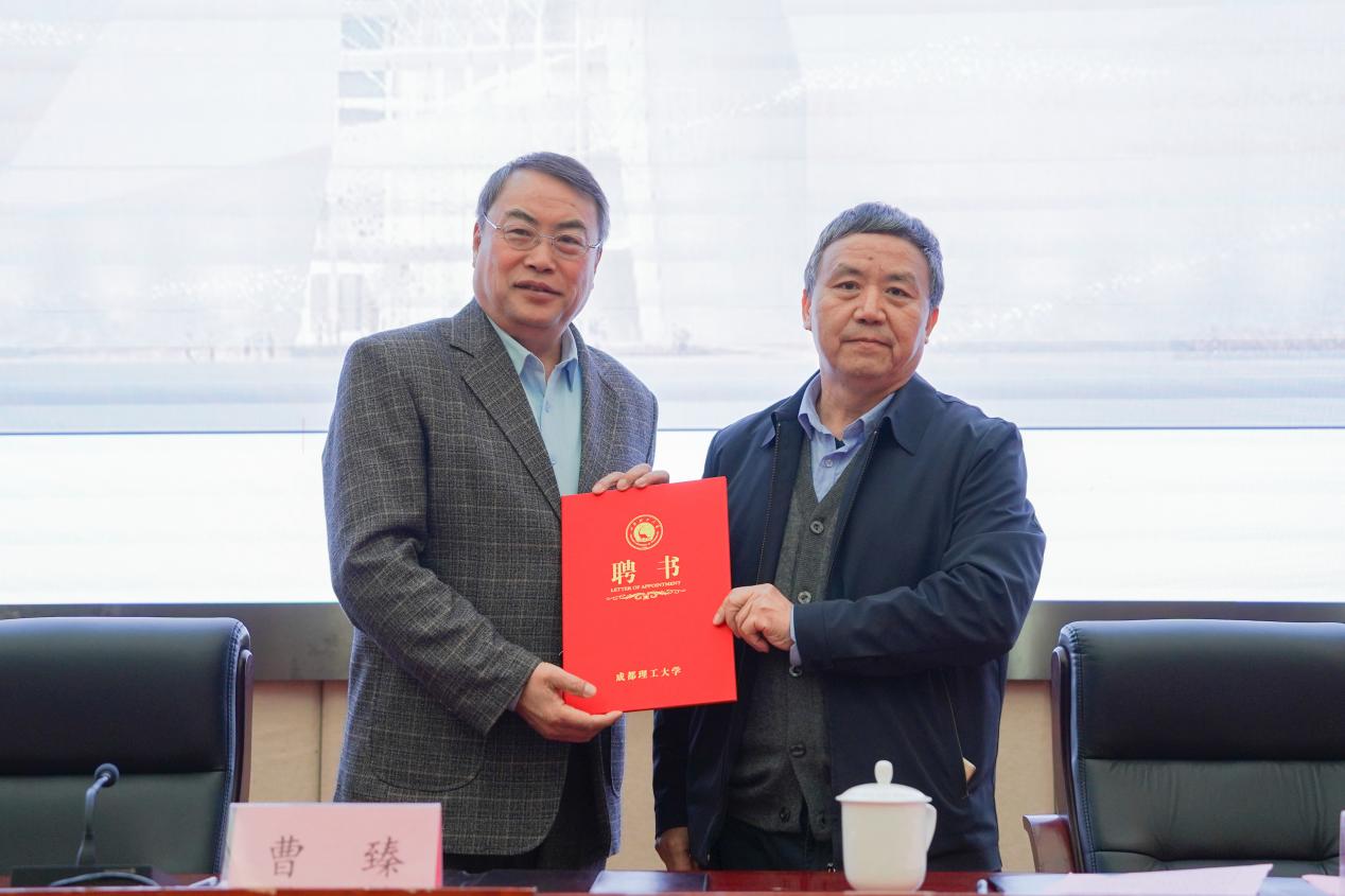 报告会开始前,举行了兼职教授聘任仪式,许强为曹臻颁发聘书。
