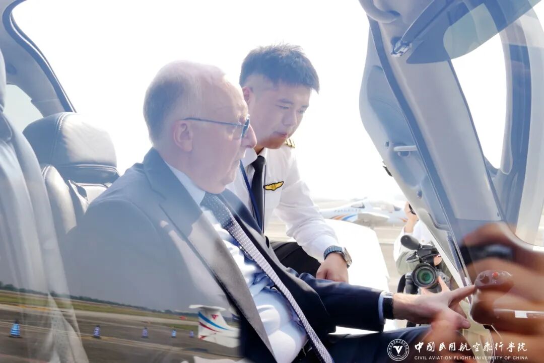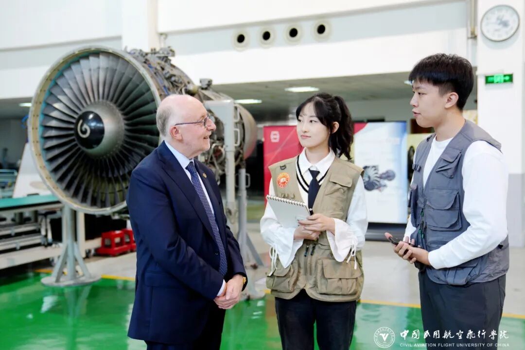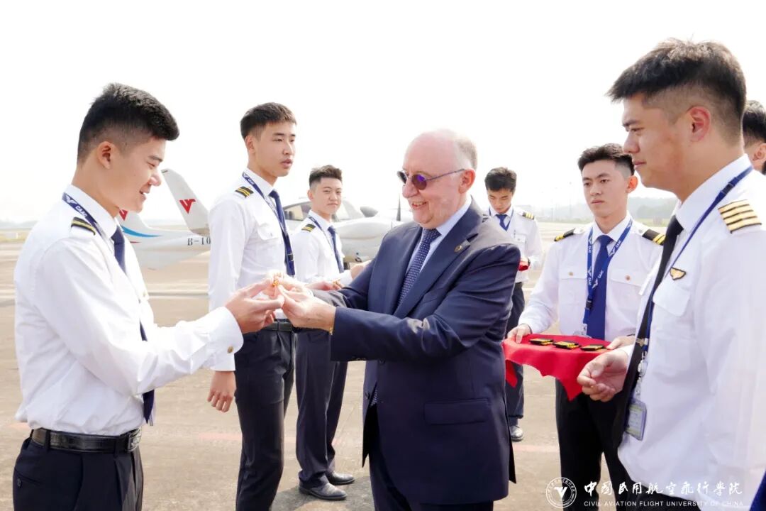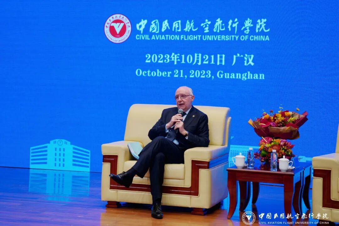 他表示,很高兴今天能够在中飞院见到这么多积极热情的学生,中飞院是一所独一无二的大学,这里的学生有非常好的平台来学习有关航空的一切知识。在未来的几十年里,学生们都可以在现有技术的基础上继续学习积累经验,可能还有机会探索出新的科学技术,例如氢能飞机或者新的导航系统。