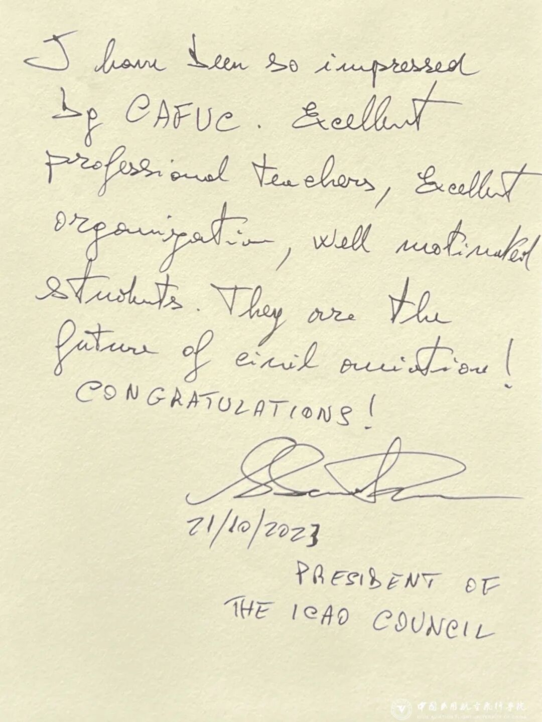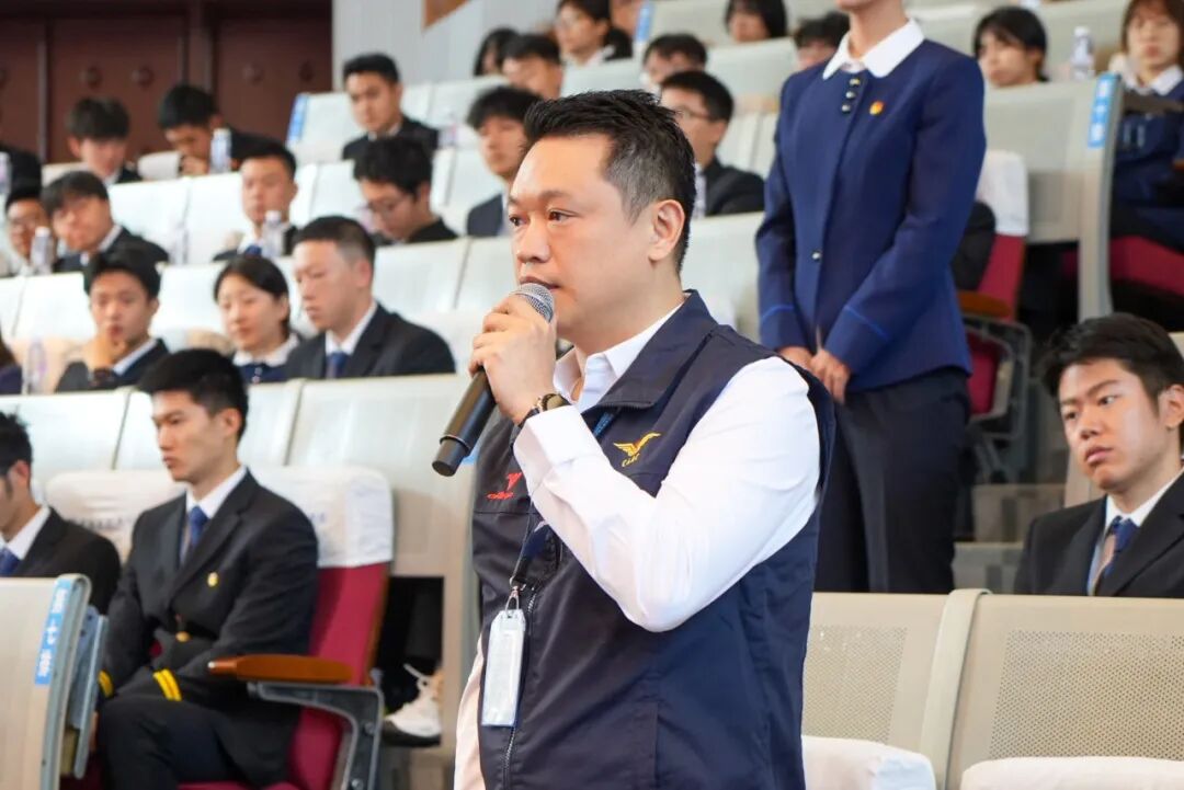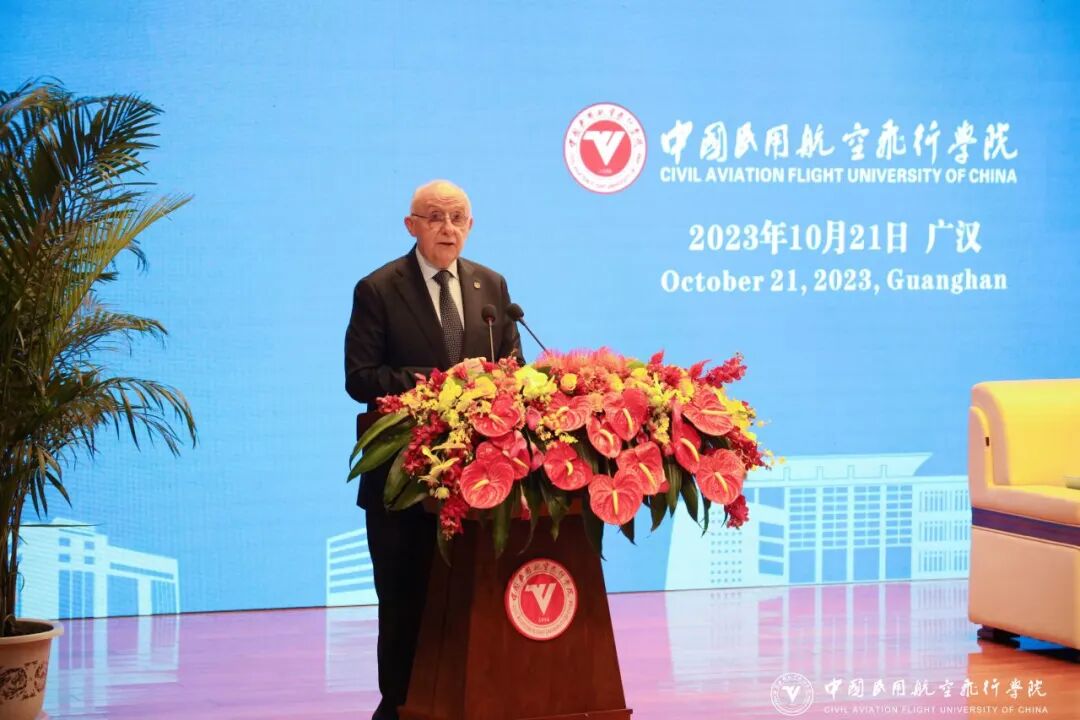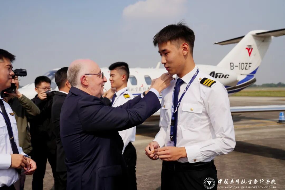 他表示,很高兴今天能够在中飞院见到这么多积极热情的学生,中飞院是一所独一无二的大学,这里的学生有非常好的平台来学习有关航空的一切知识。在未来的几十年里,学生们都可以在现有技术的基础上继续学习积累经验,可能还有机会探索出新的科学技术,例如氢能飞机或者新的导航系统。