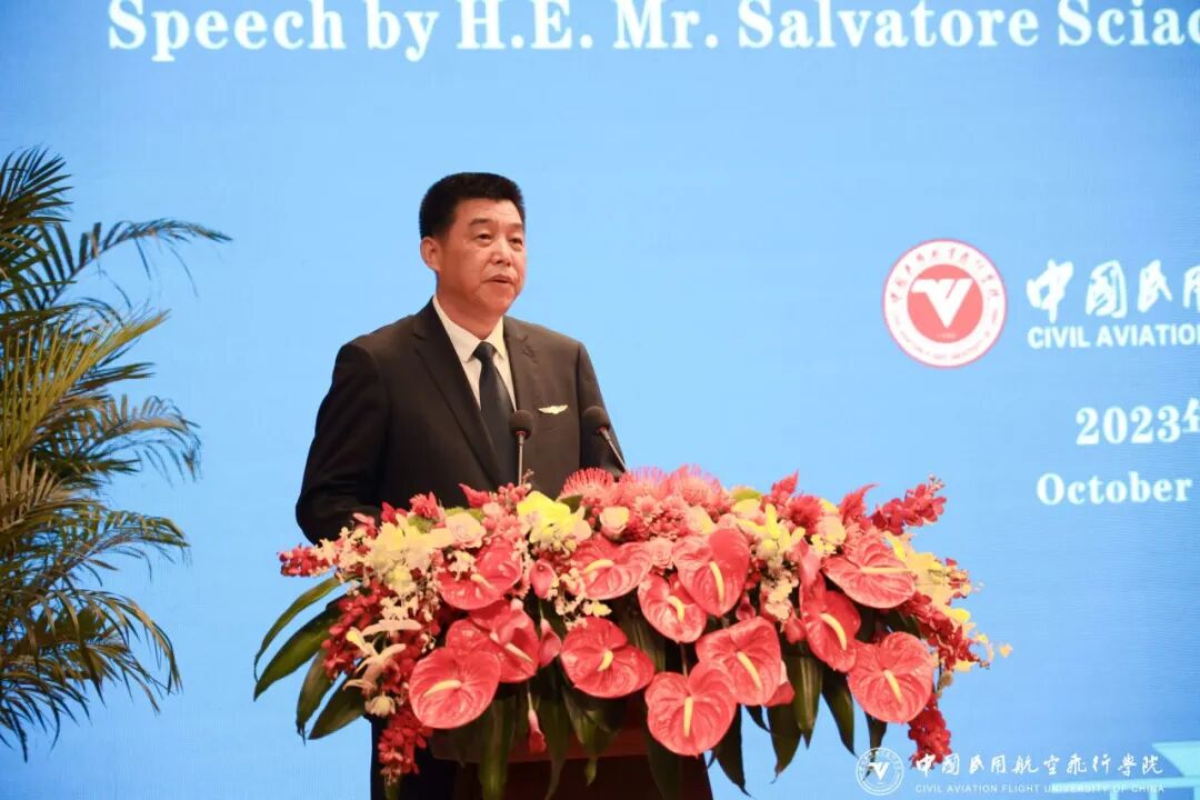 关立欣代表学校三万余名师生对萨尔瓦托雷·夏基塔诺主席到访表示热烈欢迎。他表示,中飞院始终坚持开放办学,高度重视发展的同时与国际组织、各个国家民航、高校加强合作,推动国家之间同步发展,深入推进国际民航合作与交流。
