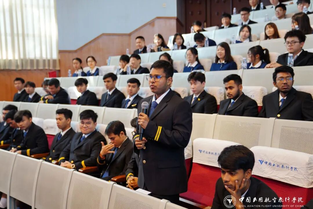 航空工程学院孟加拉大一留学生SHAHID SHAHRIAR AHAMMED问:“请问国际民航组织在中国和孟加拉之间民航产业发展的目标是什么?国际民航组织将采取哪些举措来加强中孟两国民航系统的联系?”