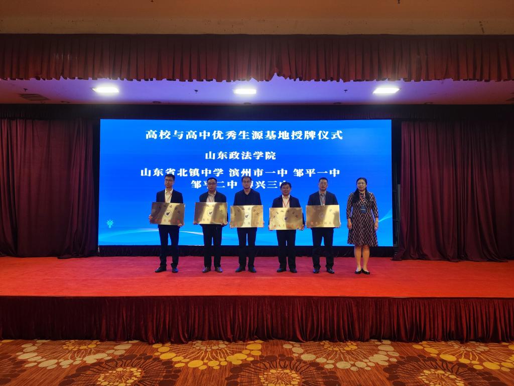 张晓明向与会的高中与高校代表介绍了山东政法学院的基本情况,并就会议预设的讨论议题发表了观点和看法,得到了与会同仁的一致赞同与肯定。她表示,此次活动是“互相看见,双向奔赴”的育才、选才之约,将为高校更好地倾听高中师生心声,为确立双方共同的发展目标和愿景,搭建通道和桥梁。她提出,山东政法学院将积极探索以在高中建立法治特色实验班为载体的人才共育模式,主动担负起为高中学子普法宣传的责任与义务,向各生源高中赠送青少年普法讲座,为法治中国建设贡献山政力量。随后,张晓明与山东省北镇中学等14所中学签订优秀生源基地共建协议并向各优秀生源高中授牌。