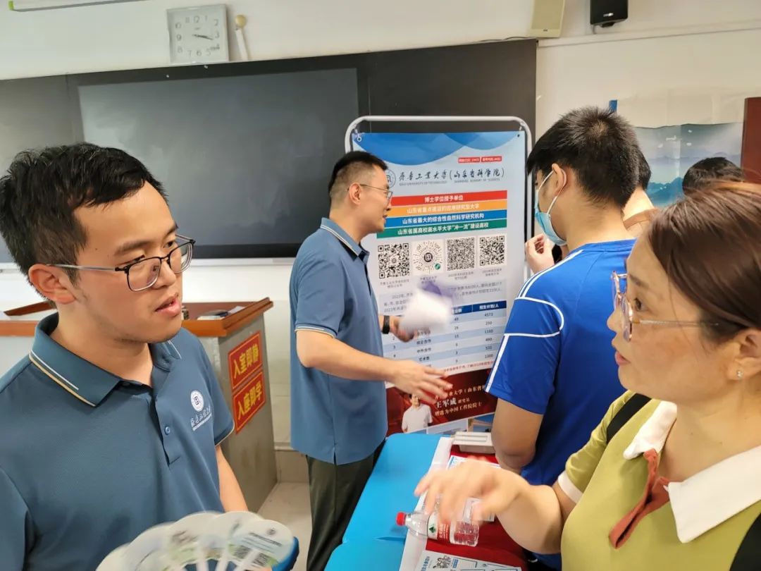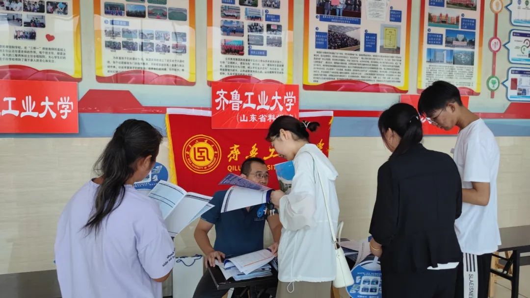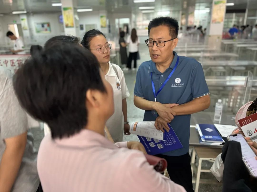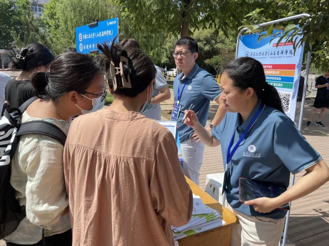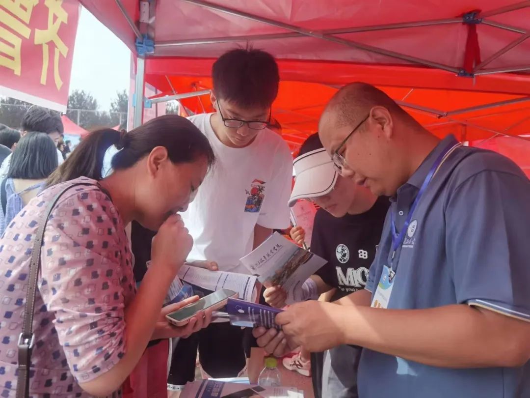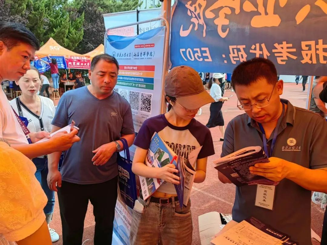 咨询会现场,学校(科学院)展位异常火爆,吸引了大量考生和家长。副校(院)长刘玉亲临济南高新国际