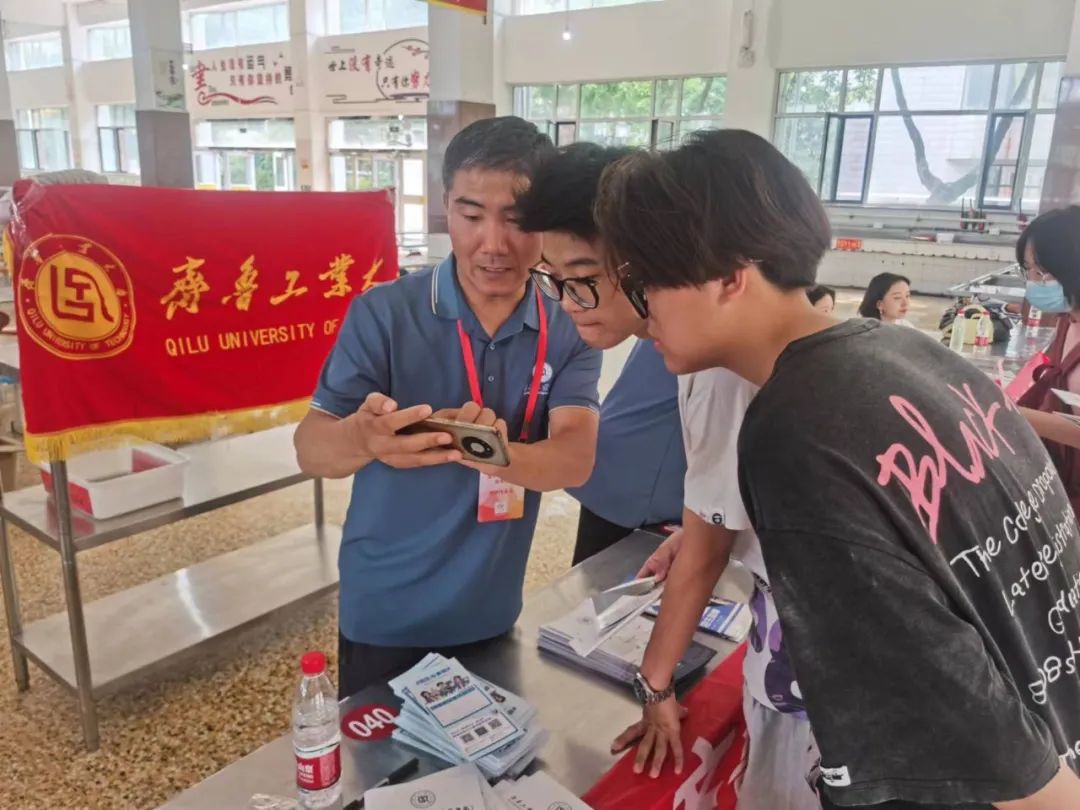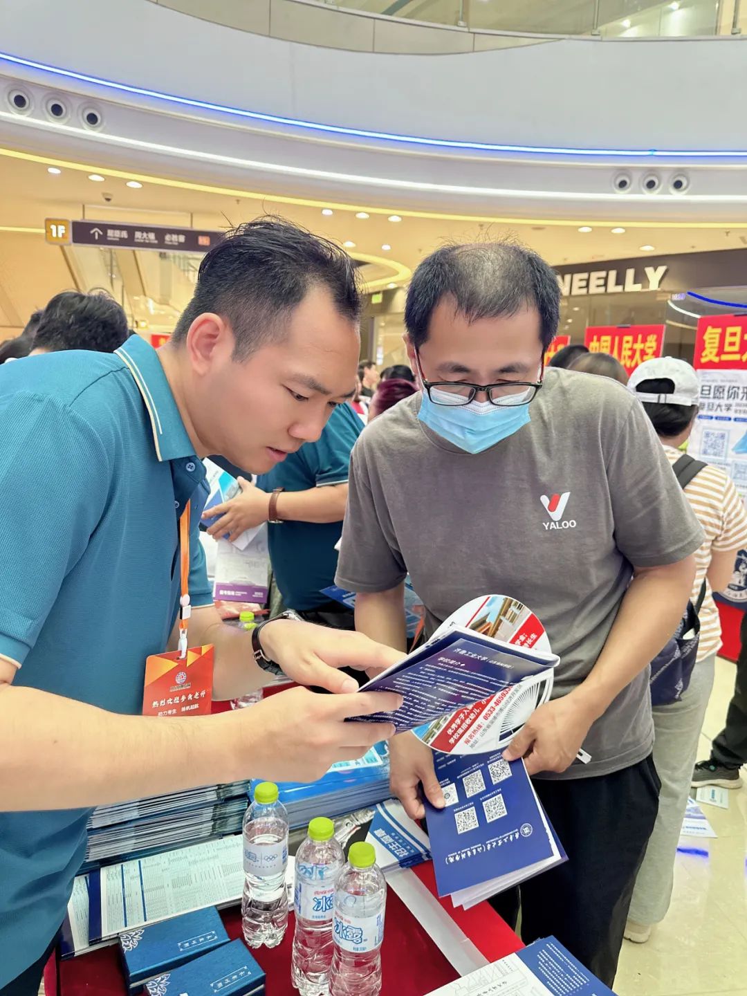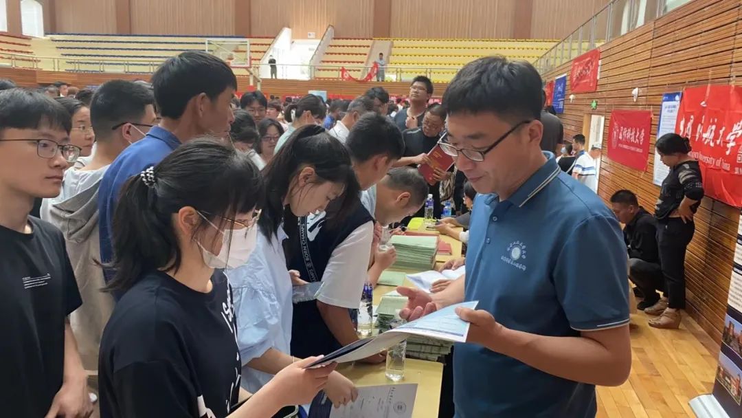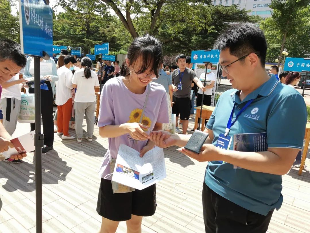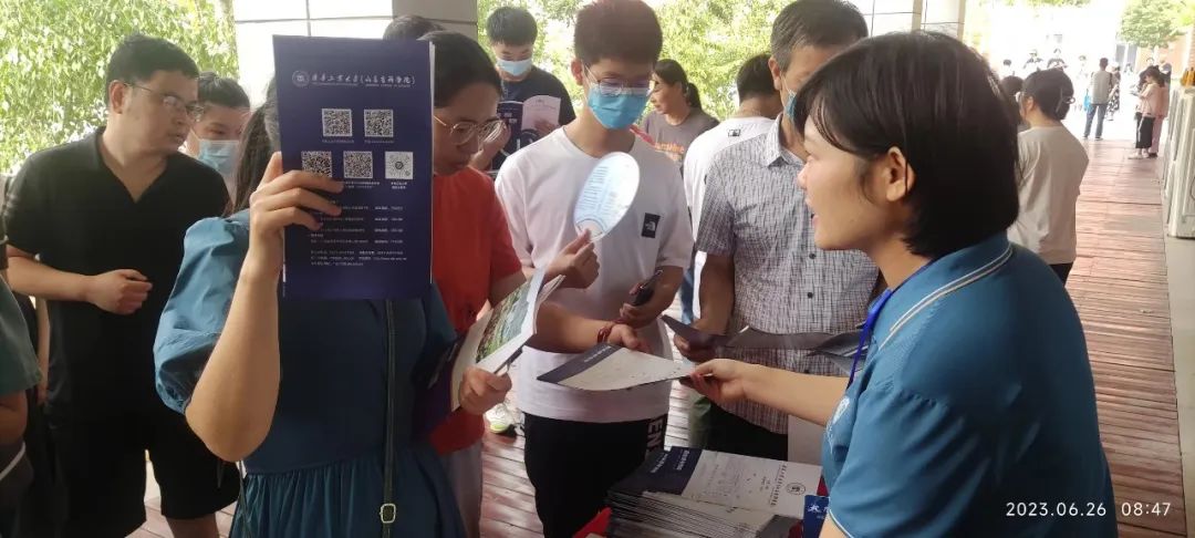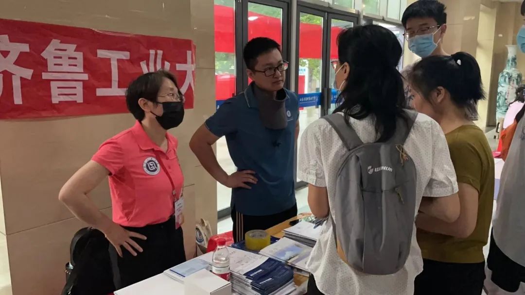 咨询会现场,学校(科学院)展位异常火爆,吸引了大量考生和家长。副校(院)长刘玉亲临济南高新国际