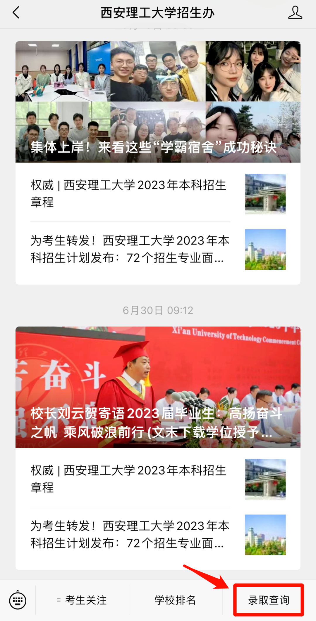 2.录取结束后,我校招生办公室会及时向考生邮寄录取通知书,考生可通过以下方式查询录取及通知书寄送情况。
