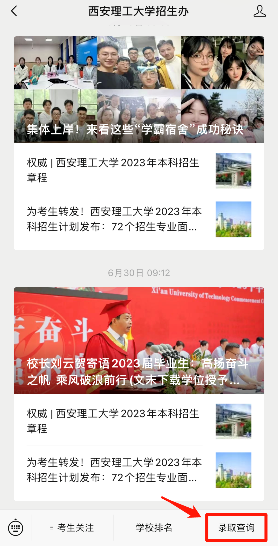 2.录取结束后,我校招生办公室会及时向考生邮寄录取通知书,考生可通过以下方式查询录取及通知书寄送情况。