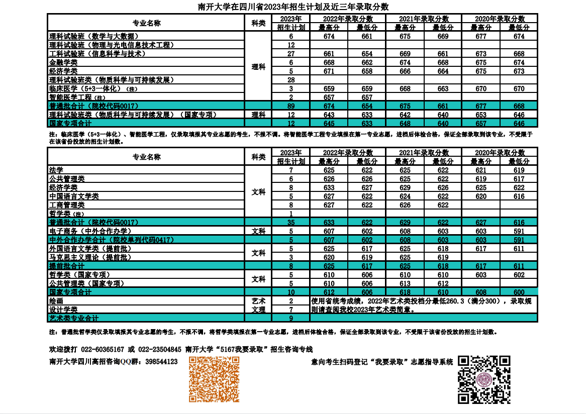 南开大学在四川省2023年招生计划及近三年录取分数.pdf
