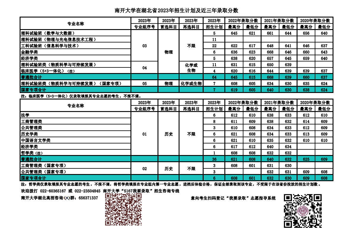 南开大学在湖北省2023年招生计划及近三年录取分数.pdf