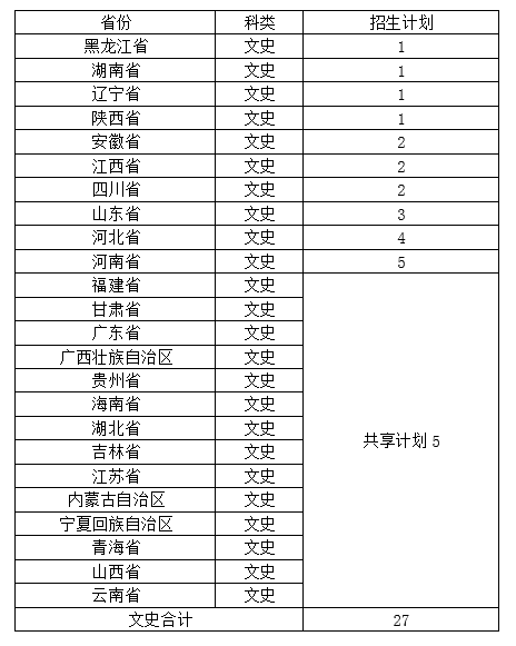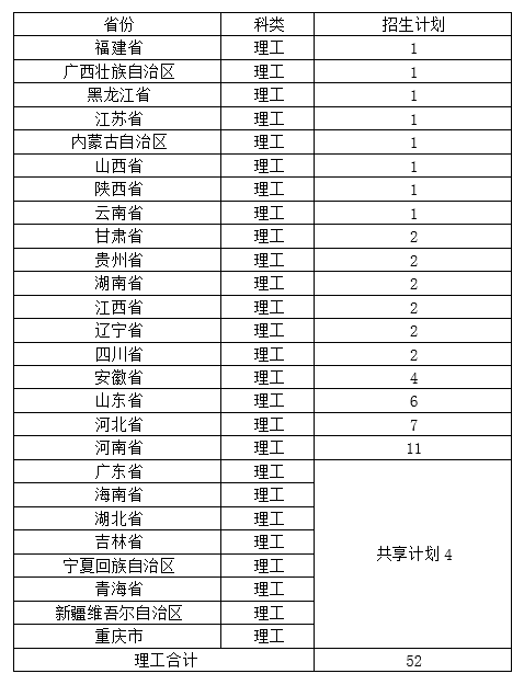 我校依据各省市考核合格人数拟定高校专项分省计划,具体如下: