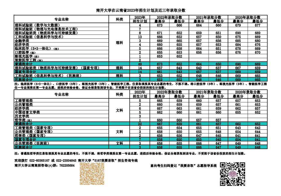 南开大学在云南省2023年招生计划及近三年录取分数.pdf