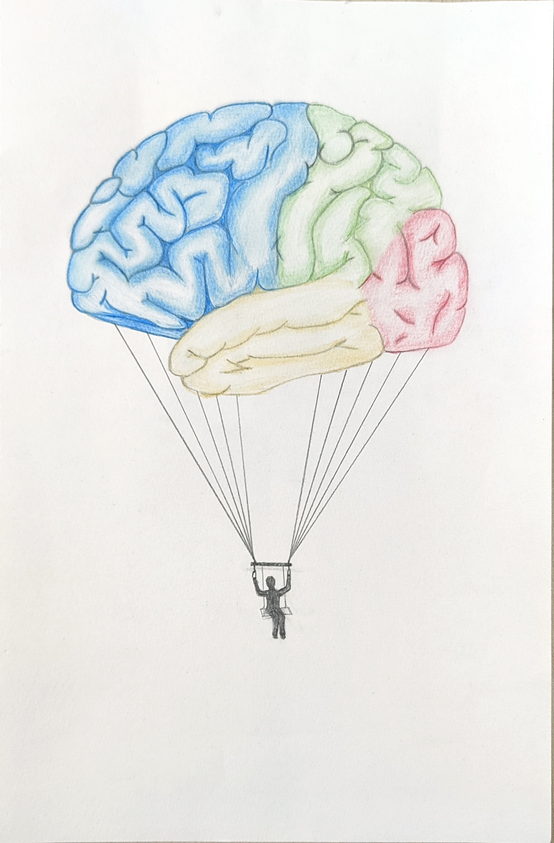 作品介绍:大脑是人体非常重要的器官,人的思维活动,学习和记忆都是在大脑进行的。近些年来,因为各种各样的原因,人们无论是在学习还是在工作中都存在一定的思维定势,本作品将热气球用大脑来代替,希望人们都能自由的思考,摆脱既有的思维定势。