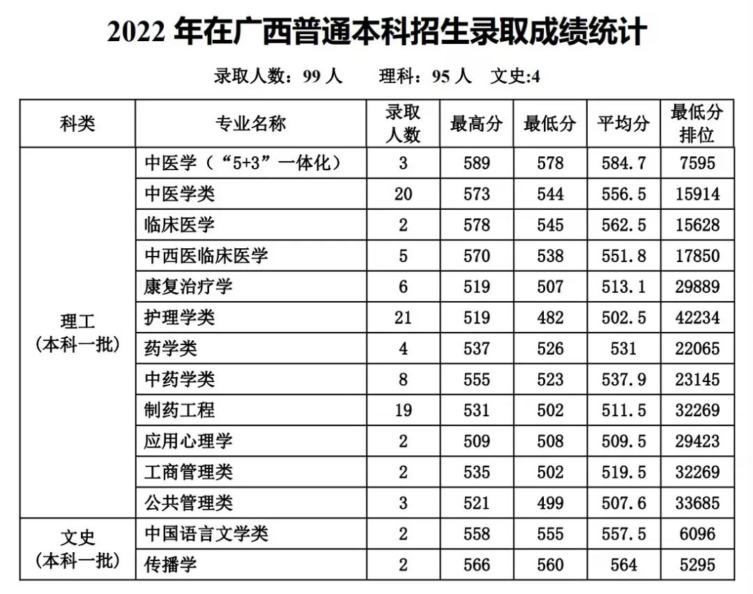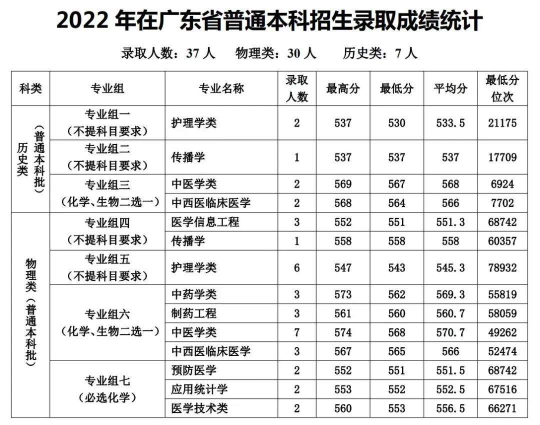 及2022年录取成绩