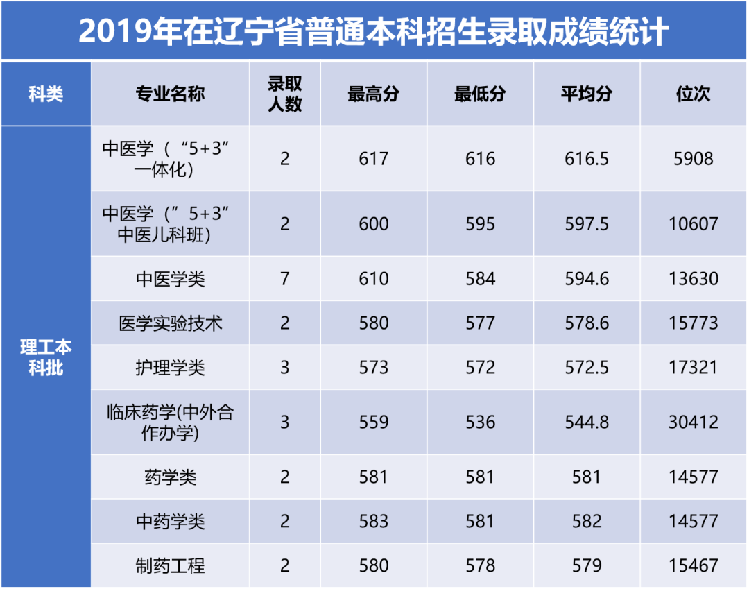 化学、生物二选一:中医学(“5+3”一体化)、中医学(“5+3”一体化中医儿科学)、中医学类、临床药学(中外合作办学)、药学类、中药学类、制药工程。提档最高分数621分,为中医学(“5+3”一体化)专业;提档最低分数526分,为临床药学(中外合作办学)专业,排位在辽宁省物理类33803位。