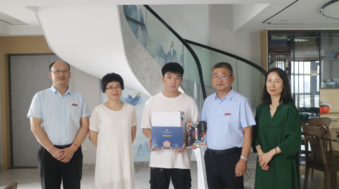 上午9点,机电与能源工程学院副院长张学昌教授来到位于宁波市鄞州区的张同学家中,亲手送上我校2023年第一封录取通知书和纪念品。
