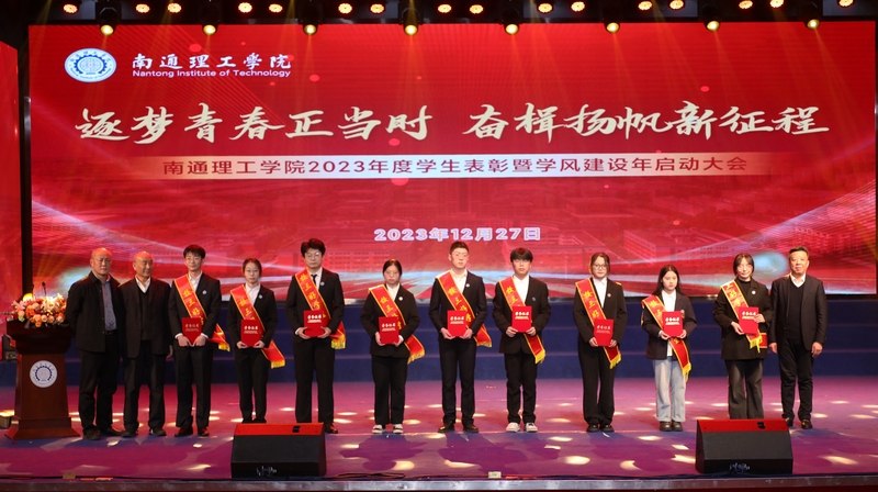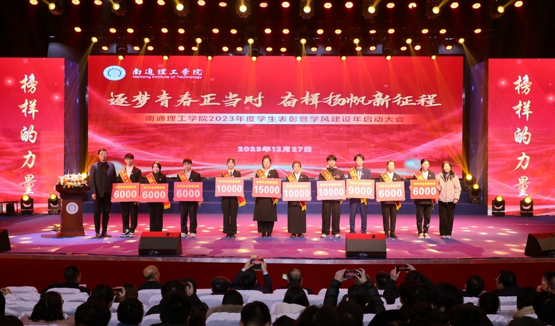 12月27日下午,南通理工学院2023年度学生表彰暨学风建设年启动大会在科技楼大礼堂隆重举行。大会对国家奖学金获得者、国家励志奖学金获得者、学科专业竞赛获奖者、学校奖学金获得者、三好学生、优秀学生干部等进行了表彰。