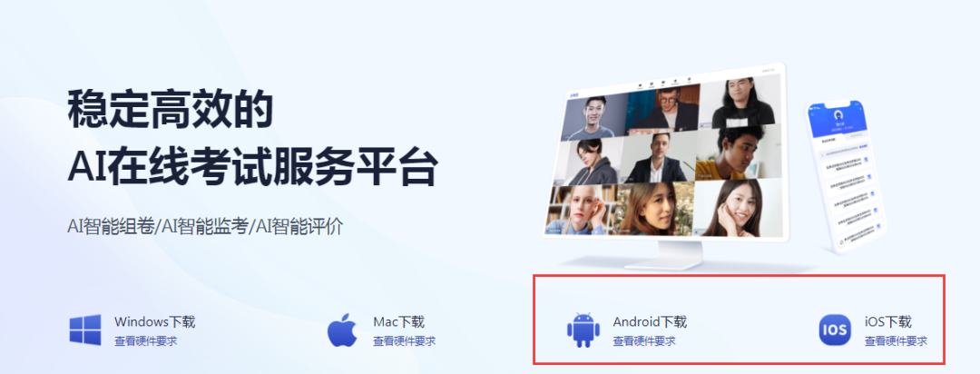 3. 网络环境网络要求需达到带宽上下至少10M。此网址为测速网址:https://www.speedtest.cn/4. 考试平台下载手机端下载安装“云考AI”程序,电脑打开:https://home.yunkaoai.com/网址,安卓系统手机或iOS系统手机选择相应的下载、用浏览器扫码安装即可,iOS系统手机也可以直接在App Store里搜索云考AI进行下载。
