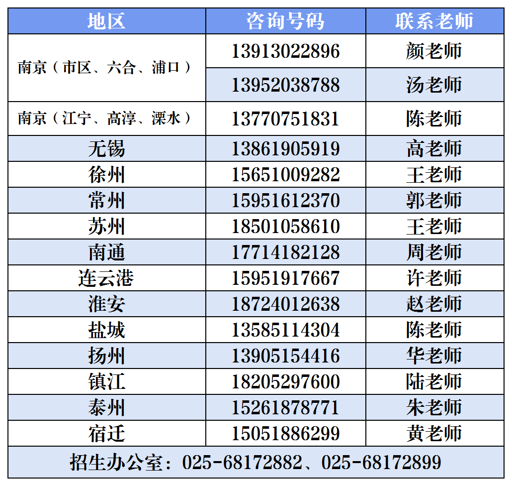 联系方式联系电话:025-68172882、68172899、15850769514咨询QQ群号:960210862(江苏提前招生)