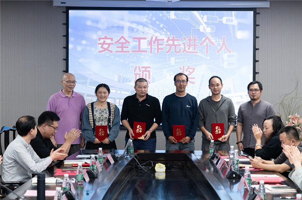 接着,徐宏俊副书记宣读了《硅湖职业技术学院2022-2023学年安全工作先进单位和个人》的表彰决定。执行校长曾勇勤为获得2022-2023学年安全工作先进单位颁奖、监事长夏勤和校长助理徐意雯为2022-2023学年安全工作先进个人代表颁奖、徐宏俊副书记和校长助理杨柳为江苏省高校常态化安全检查工作先进个人代表颁奖。