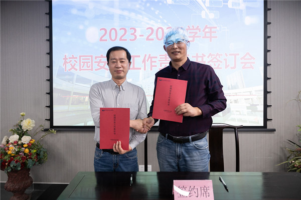 表彰结束后,祁丛林副校长代表学校与二级院(部)和部门负责人签订了《硅湖职业技术学院2023-20234学年安全工作目标责任书》。