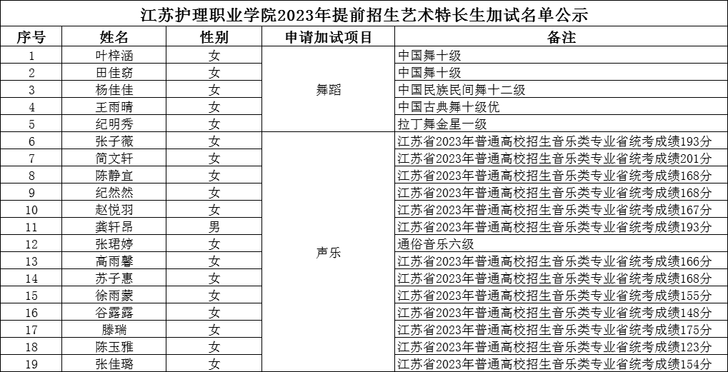 现将报名我校提前招生艺术特长生加试的考生予以公示,如有异议,请联系童老师,联系方式:15722938815。