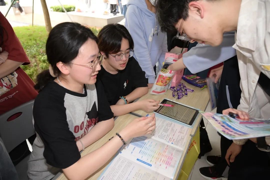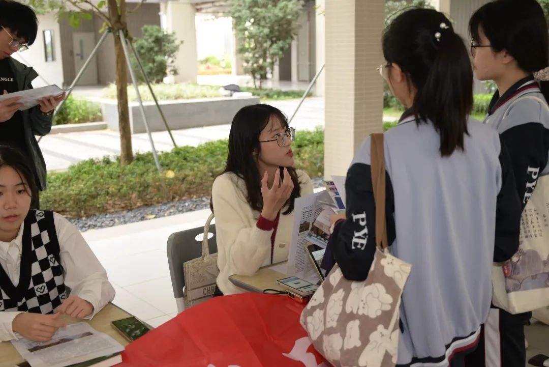 摊宣当日,团队成员提前到学校布置摊位,铺展横幅,让我们的摊位更加吸睛。团队成员各司其职,按照分工安排开展宣传。负责在摊位接受咨询的队员,热情解答学弟学妹们的问题;队员们“主动出击”,积极派发广外文创,盛情邀请路过的同学们参与摊位活动,积极主动分发宣传单,为摊位吸引了人气。